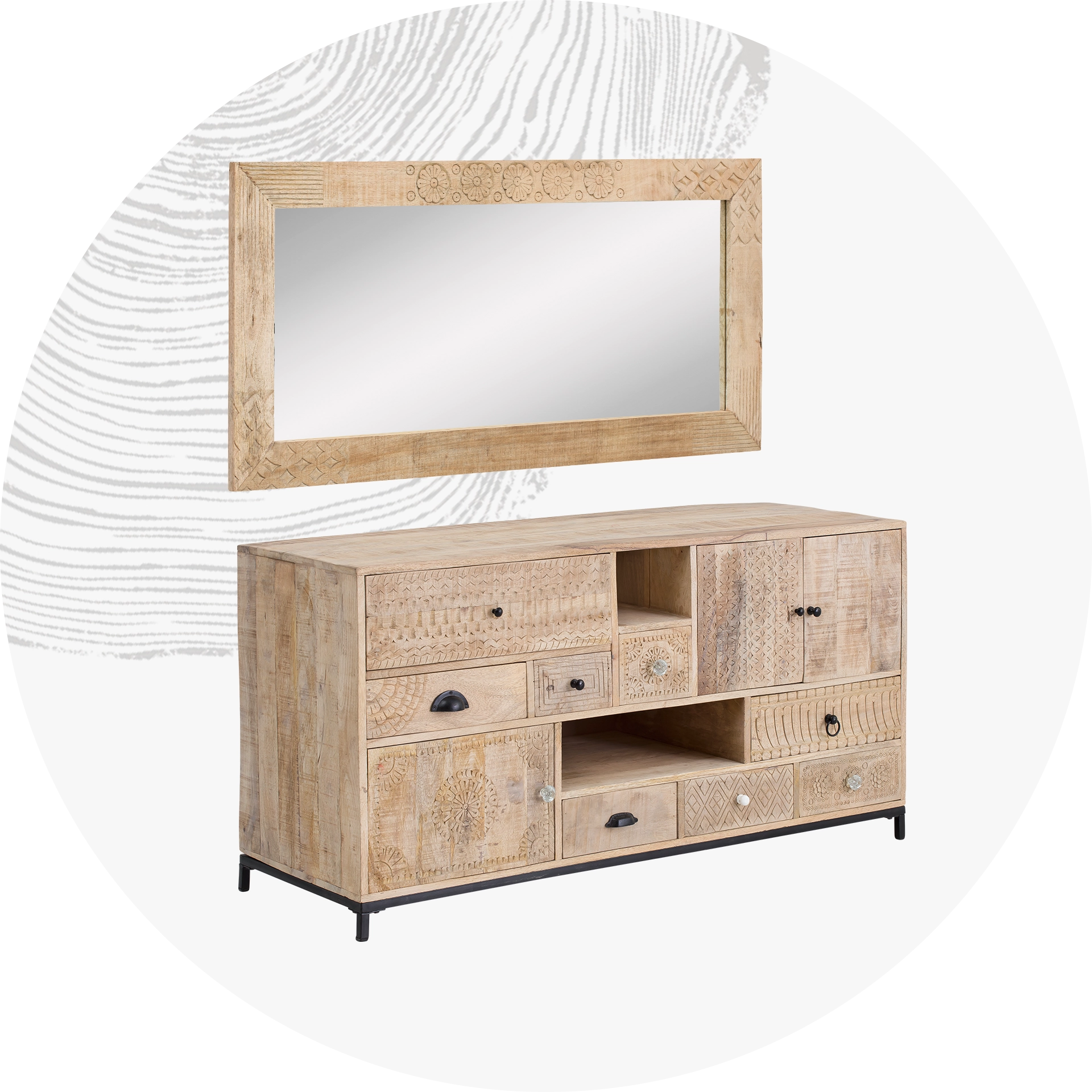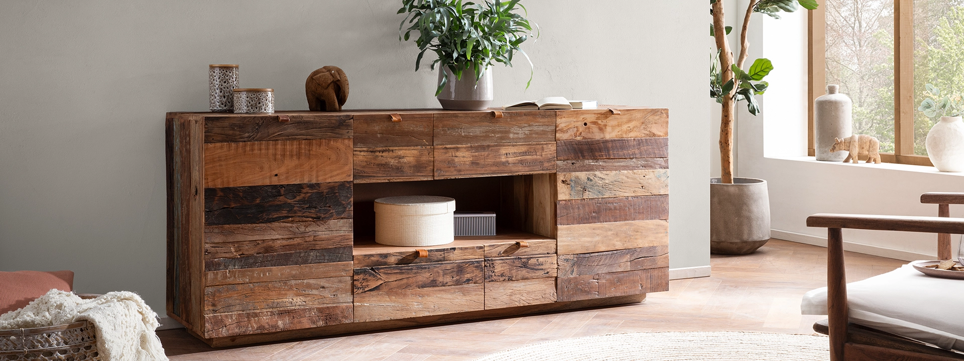 massivum setzt seit jeher auf Massivholzmöbel, ohne sich auf einzelne Holzarten zu beschränken. Die Auswahl reicht von Klassikern wie Eichenholz und Kiefernholz bis zu eher ungewöhnlichen Hölzern wie dem aus Indien stammenden Mangoholz des gleichnamigen Obstbaumes: Gibt dieser nach etwa 15 Jahren keine Früchte mehr, findet das harte Holz mit seinen warmen Brauntönen Verwendung für Möbel. Weitere Favoriten unter den Echthölzern sind Akazienholz und das wunderschön gemaserte Palisanderholz. Dieses stammt aus dem indisch-südostasiatischen Raum und ist hierzulande auch als Sheesham bekannt. Neben Massivholz kommen bei manchen Möbeln auch Holzfaserelemente zum Einsatz, die zum Beispiel als innenliegende Fachböden in Schränken oder als Rückwände bei Holzregalen Verwendung finden.
