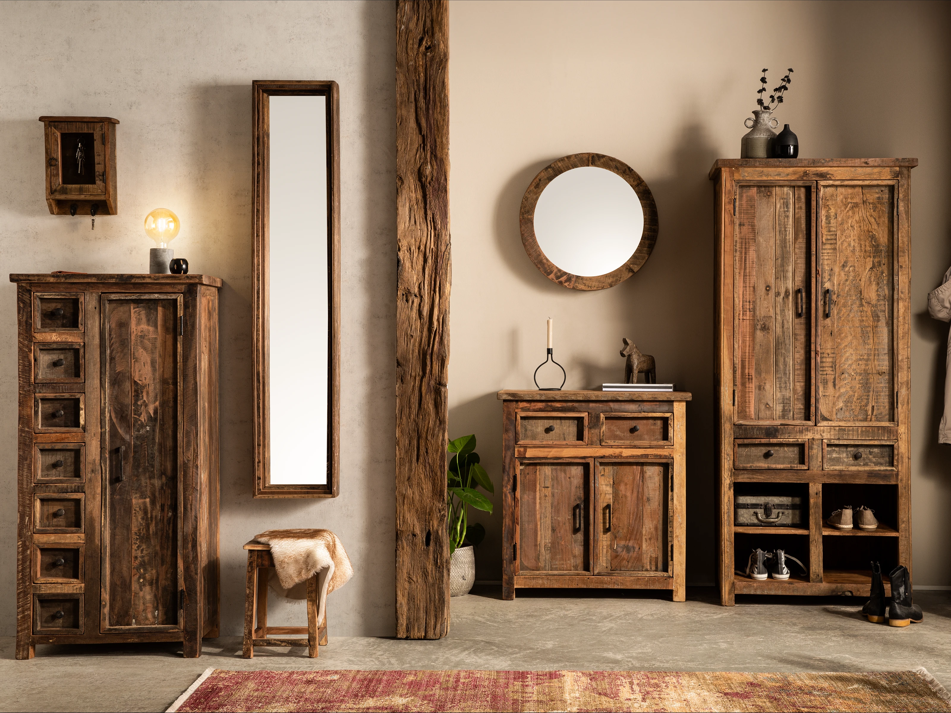 - Gerade im Flur entsteht der erste Eindruck einer Wohnung. Unsere Garderoben und Schuhschränke sorgen für Ordnung und schaffen eine einladende Atmosphäre. Die Möbel bestechen neben ihrer funktionalen Komponente vor allem durch ihren warmen Charakter, der für eine positive erste Impression beim Hereinkommen sorgt. Unter der Rubrik Flurmöbel aus Holz führen wir dabei auch Spiegel und praktische Schlüsselschränke.