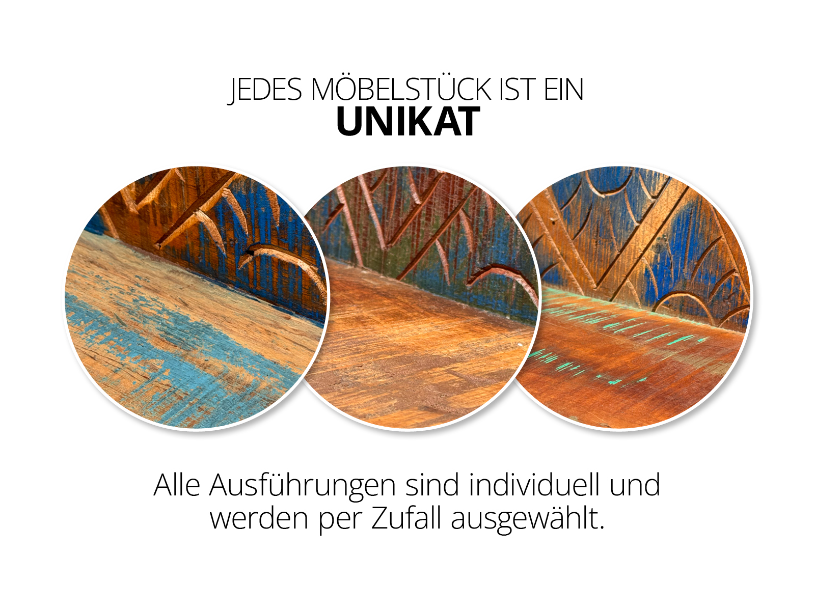 Mit unserer Serie Blue Lagoon holen Sie sich die Südsee ins heimische Badezimmer! Massives Mangoholz verzaubert mit einer einzigartigen Reliefstruktur. Die farbigen Oberflächen wirken besonders lebendig und scheinen Geschichten aus weiter Ferne zu erzählen. Die Farben werden sorgfältig ausgesucht, weiß getüncht und anschließend wird die Oberfläche versiegelt und lackiert. Dabei ist jedes Stück ein Unikat - sie kaufen hier keine maschinell gefertigte Ware. Farbabweichungen, Maß- und Formabweichungen sind bei diesen Unikaten zu beachten.