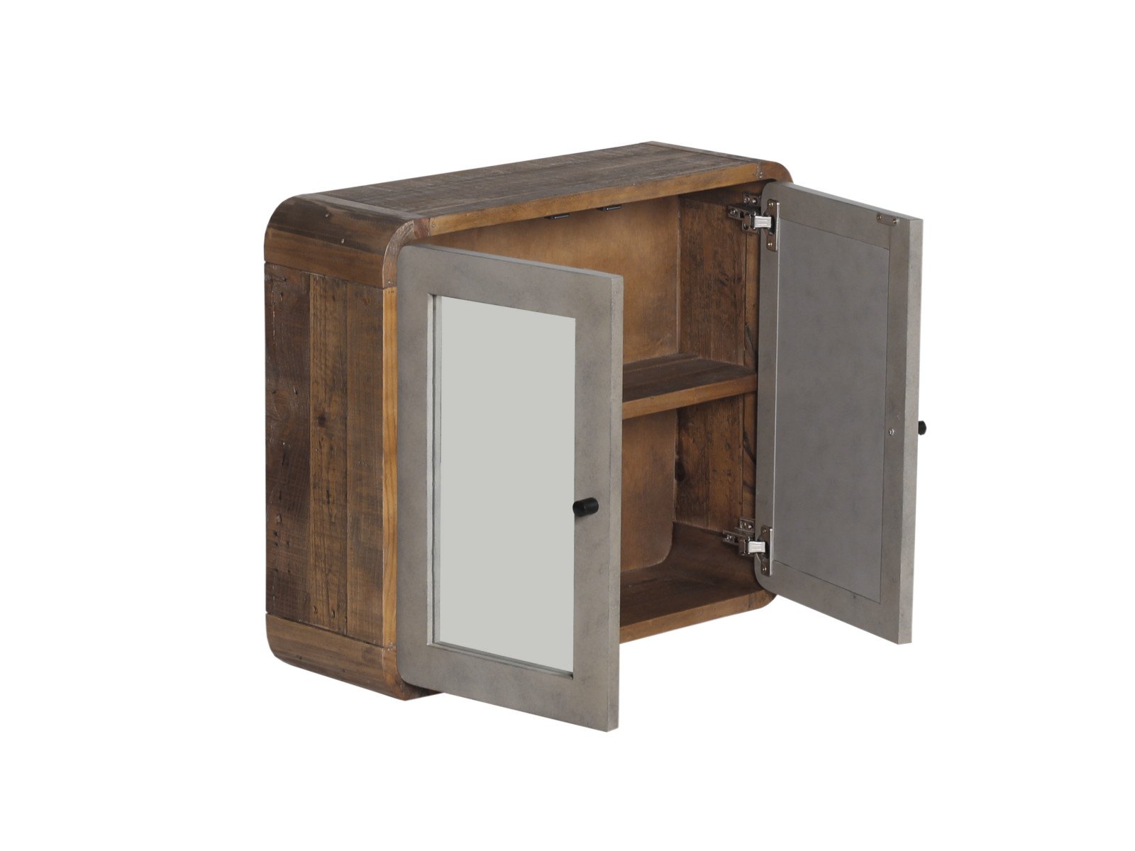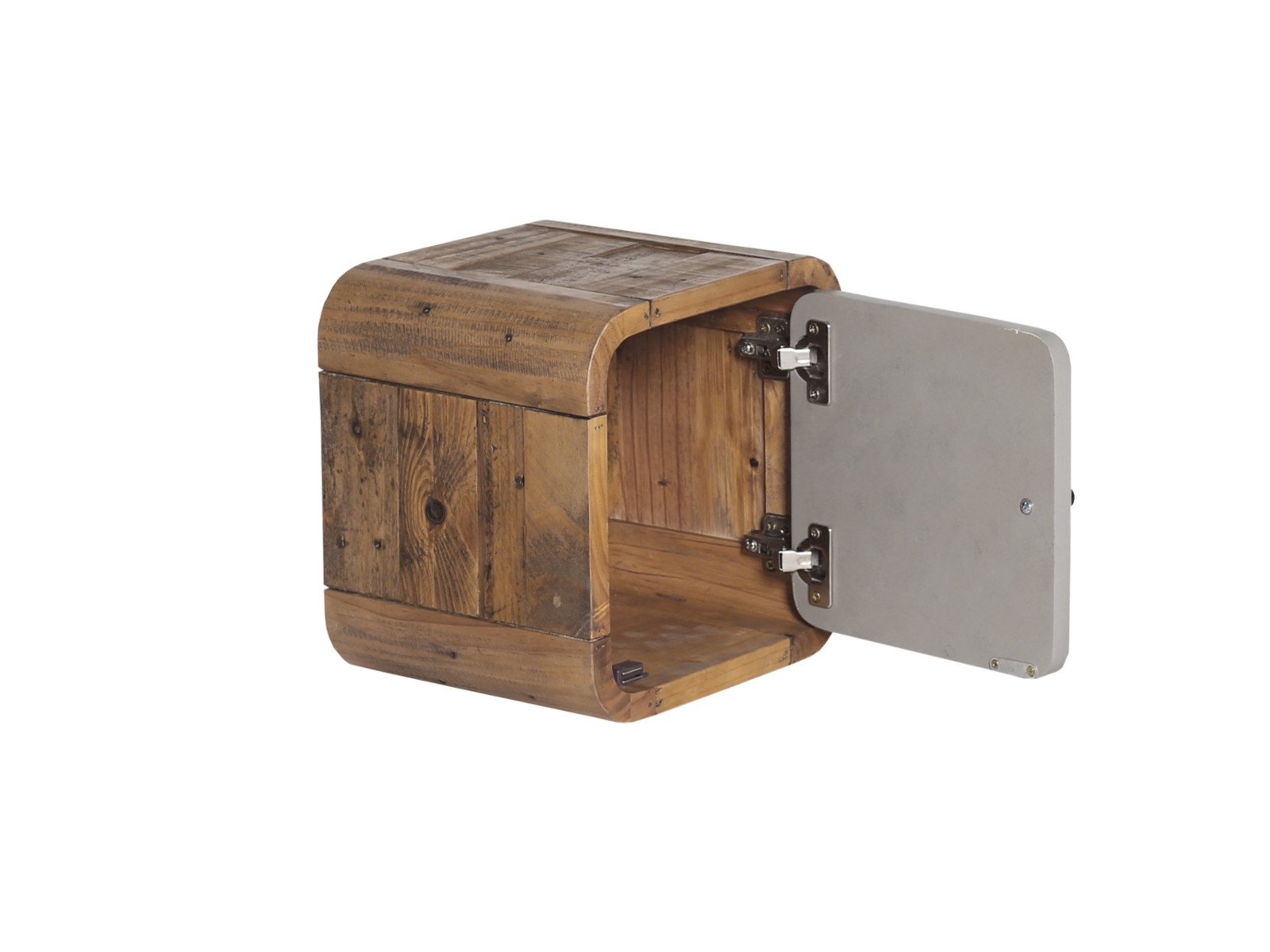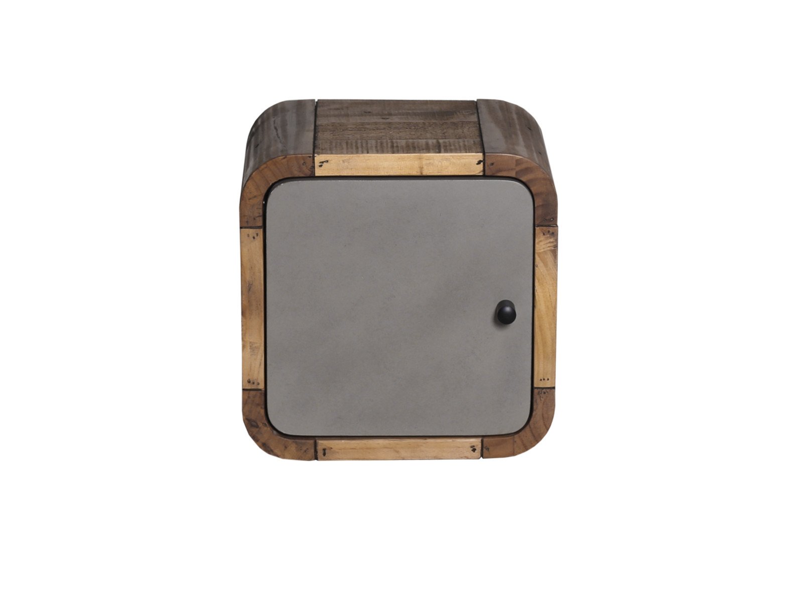 Die Möbel sind aus recycelter Pinie gefertigt und die Fronten haben eine graue Betonoptik. So trifft warmes Holz auf kühle Betonmöbel Optik. Du bekommst die Haptik von Massivholz und die moderne Ausstrahlung von Betonmöbel zugleich, ideal für rustikale und urbane Looks.