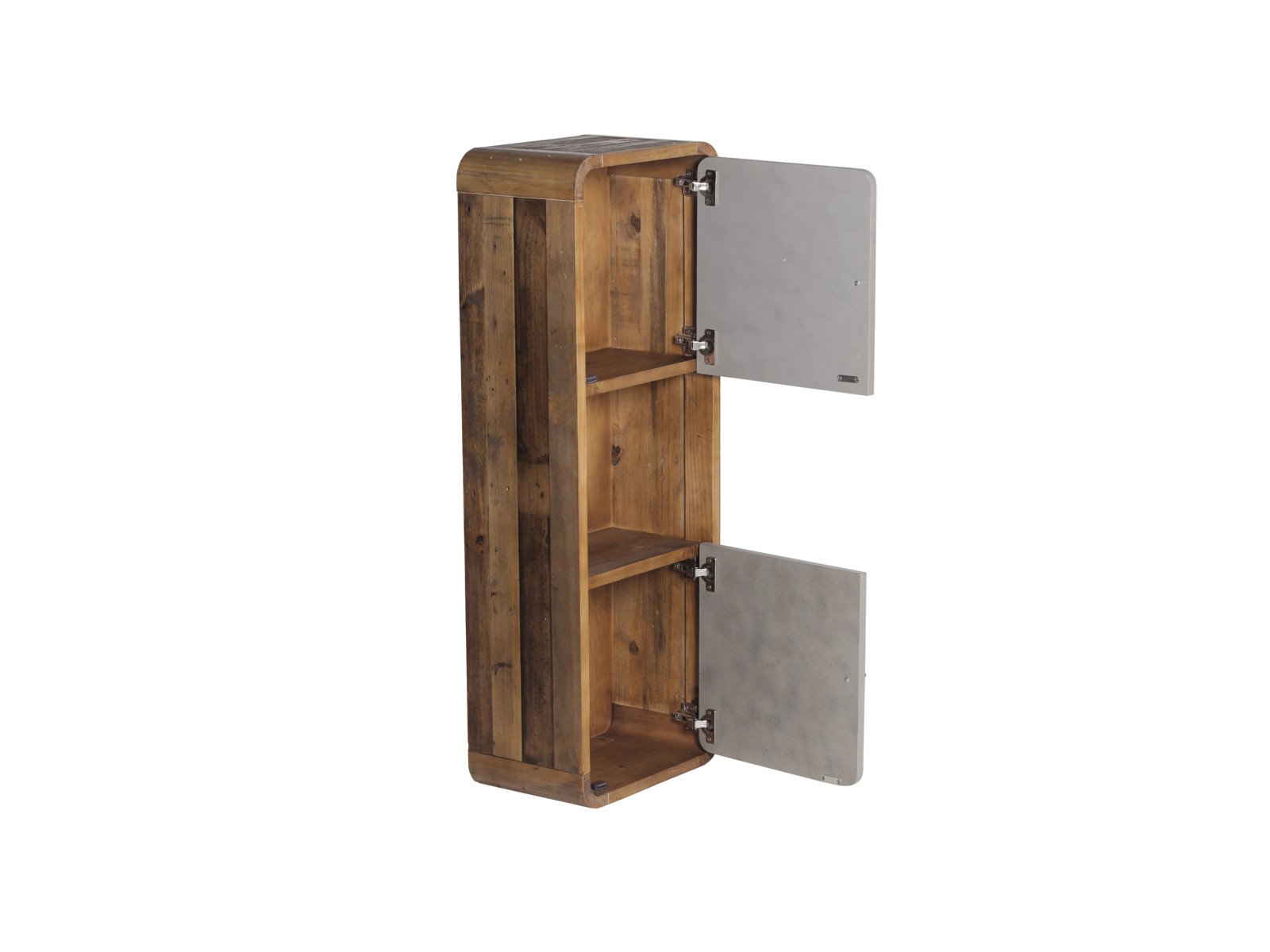 Die Basis dieses Sets bildet massives, recyceltes Pinienholz mit handgefertigter Struktur. Jede Maserung ist einzigartig und bringt ein Stück Natur in Ihr Zuhause. Die Fronten aus MDF in Betonoptik sorgen für den modernen Kontrast. Eine dünne Schutzlackierung versiegelt das Holz und schützt es zuverlässig vor Feuchtigkeit – ideal für den Einsatz im Badezimmer.