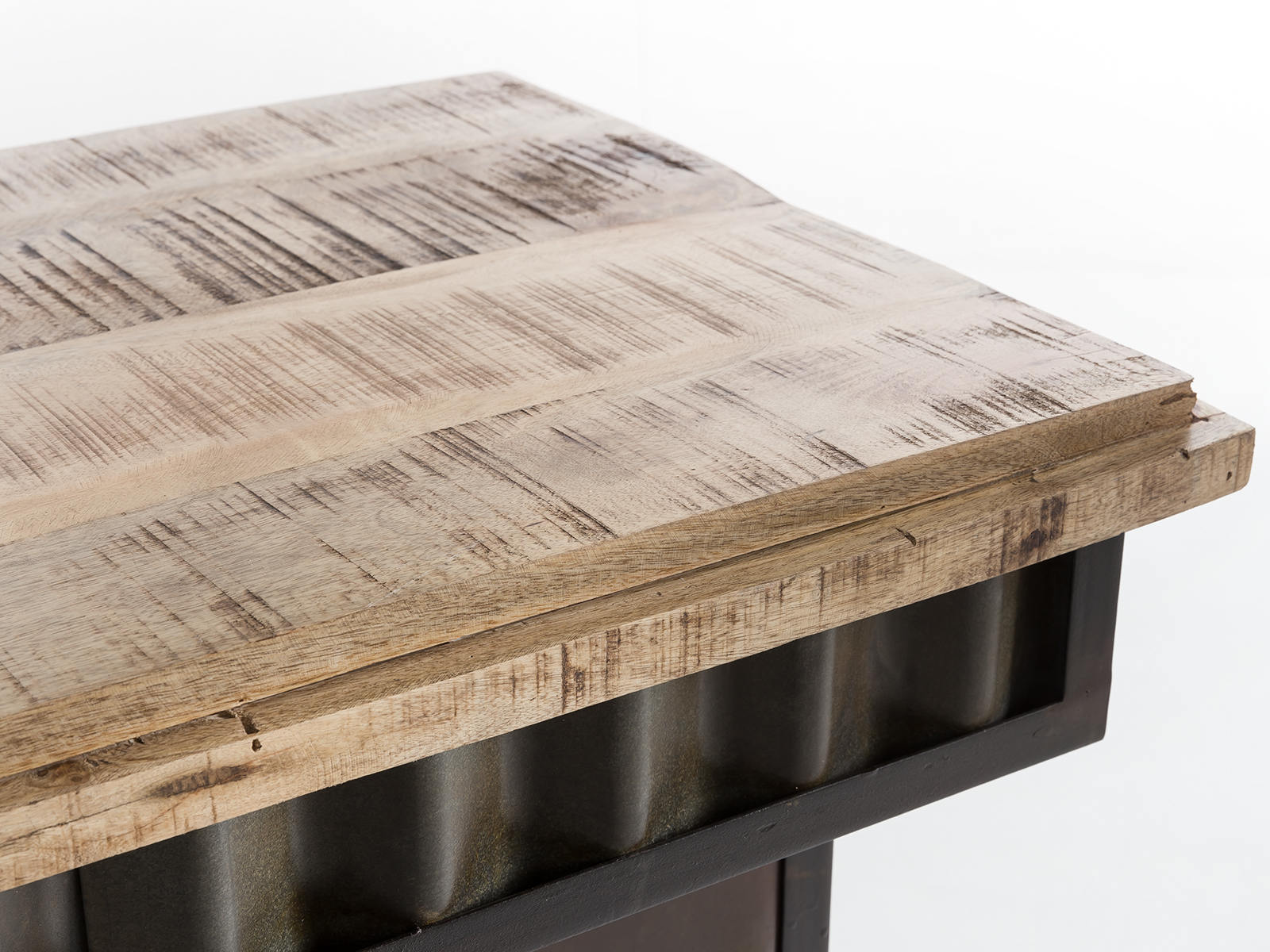 Na, was haben wir denn hier? Der Bartisch Yorkshire ist ein echter Hingucker für alle, die etwas Besonderes wollen. Mit seinem Geweih-Front-Design und der rustikalen Mangoholz-Ablage wird er sicherlich alle Blicke auf sich ziehen und jede Bar, Küche oder Esszimmer in eine trendige Location verwandeln.