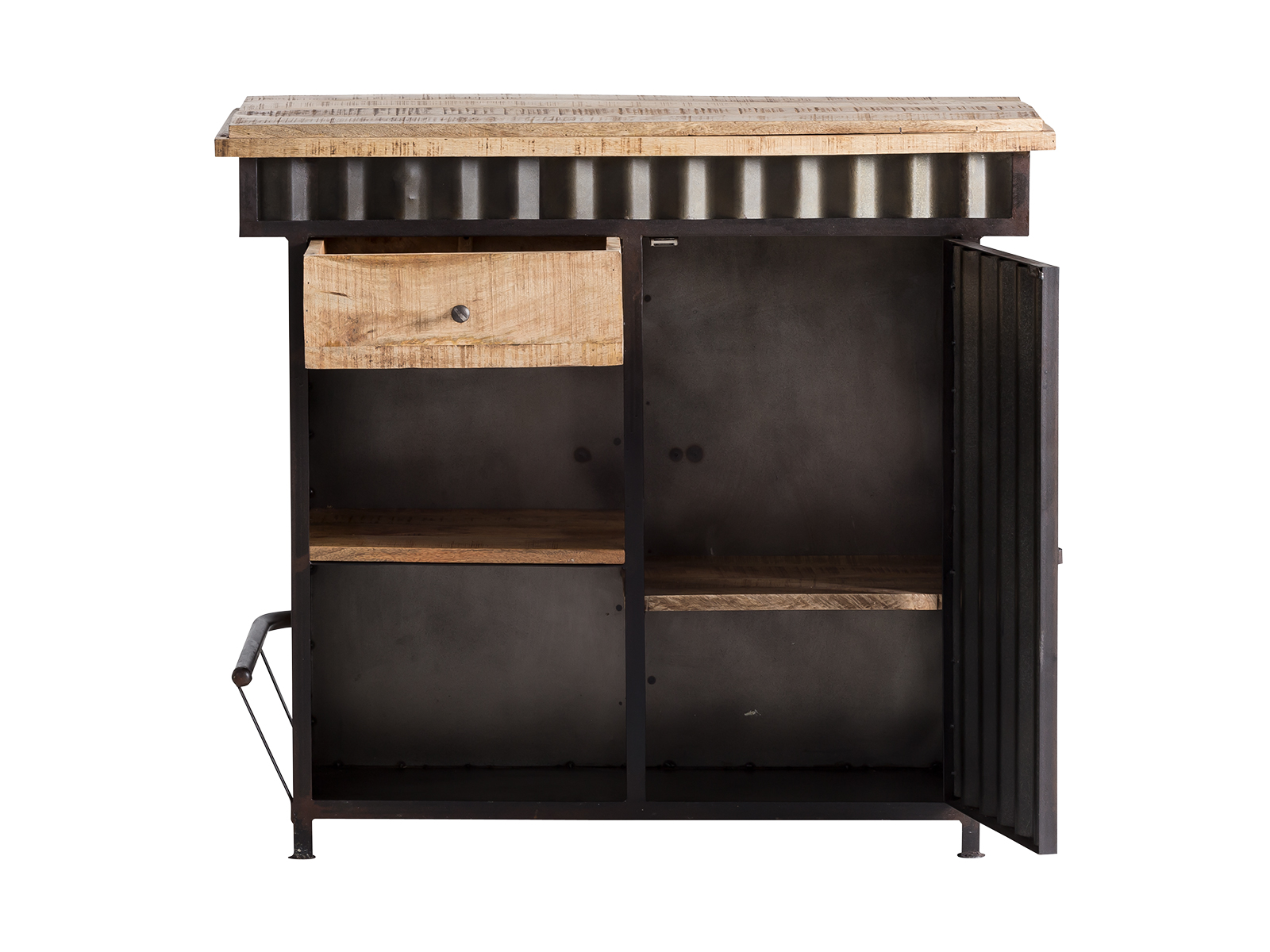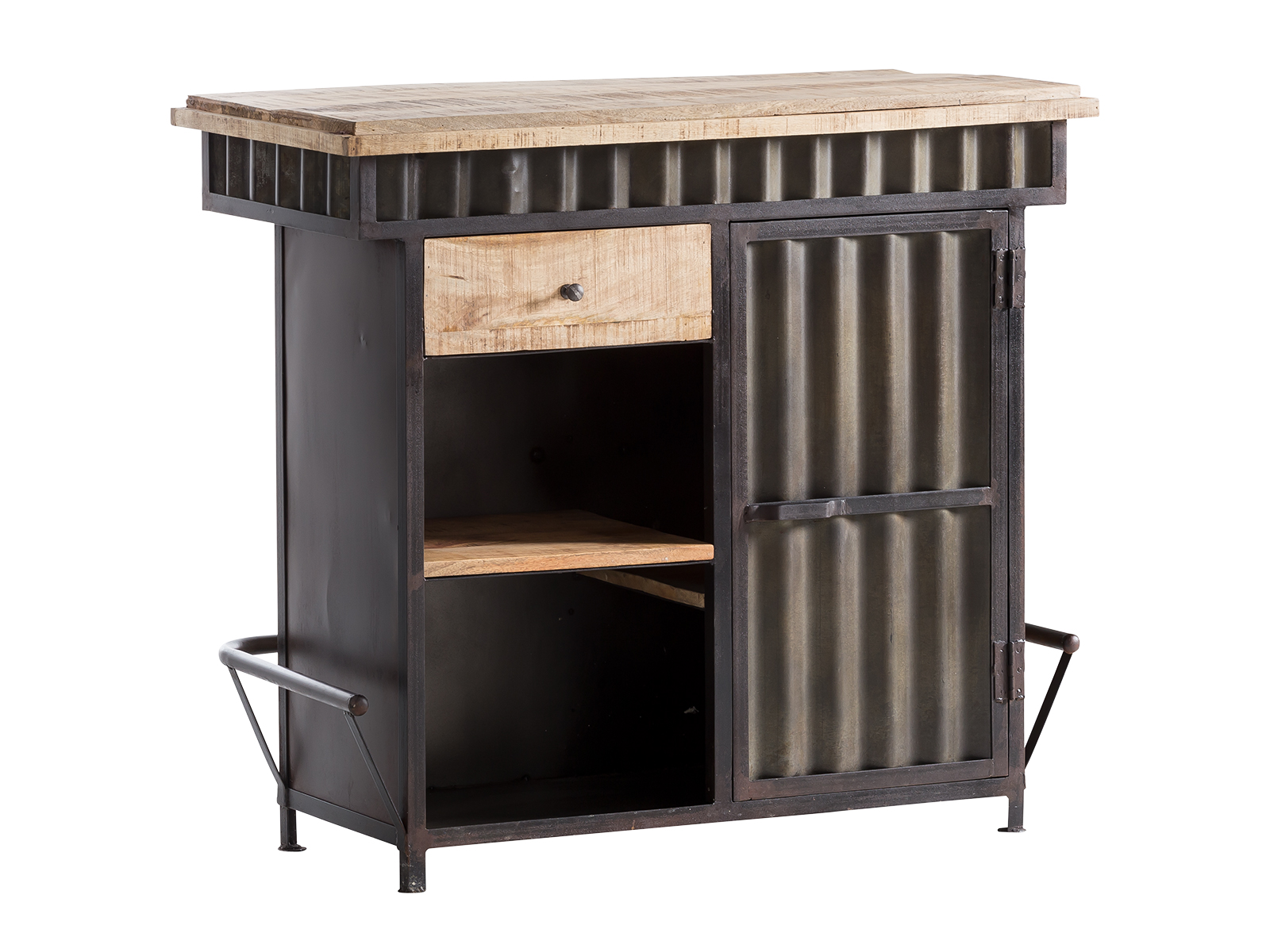 Das robuste Metallgestell mit Rundherum Fußstütze ist nicht nur stabil, sondern gibt auch einen sicheren Halt für alle, die ihre Getränke gerne im Stehen genießen. Und wenn es um die Lagerung Ihrer Barutensilien geht, haben Sie mit dem Bartresen Yorkshire alles im Griff. Die offenen Fächer, Schubkasten und Fächer hinter der Tür bieten viel Platz für Flaschen, Gläser, Korkenzieher und alles, was Sie für Ihre Lieblingsgetränke brauchen.