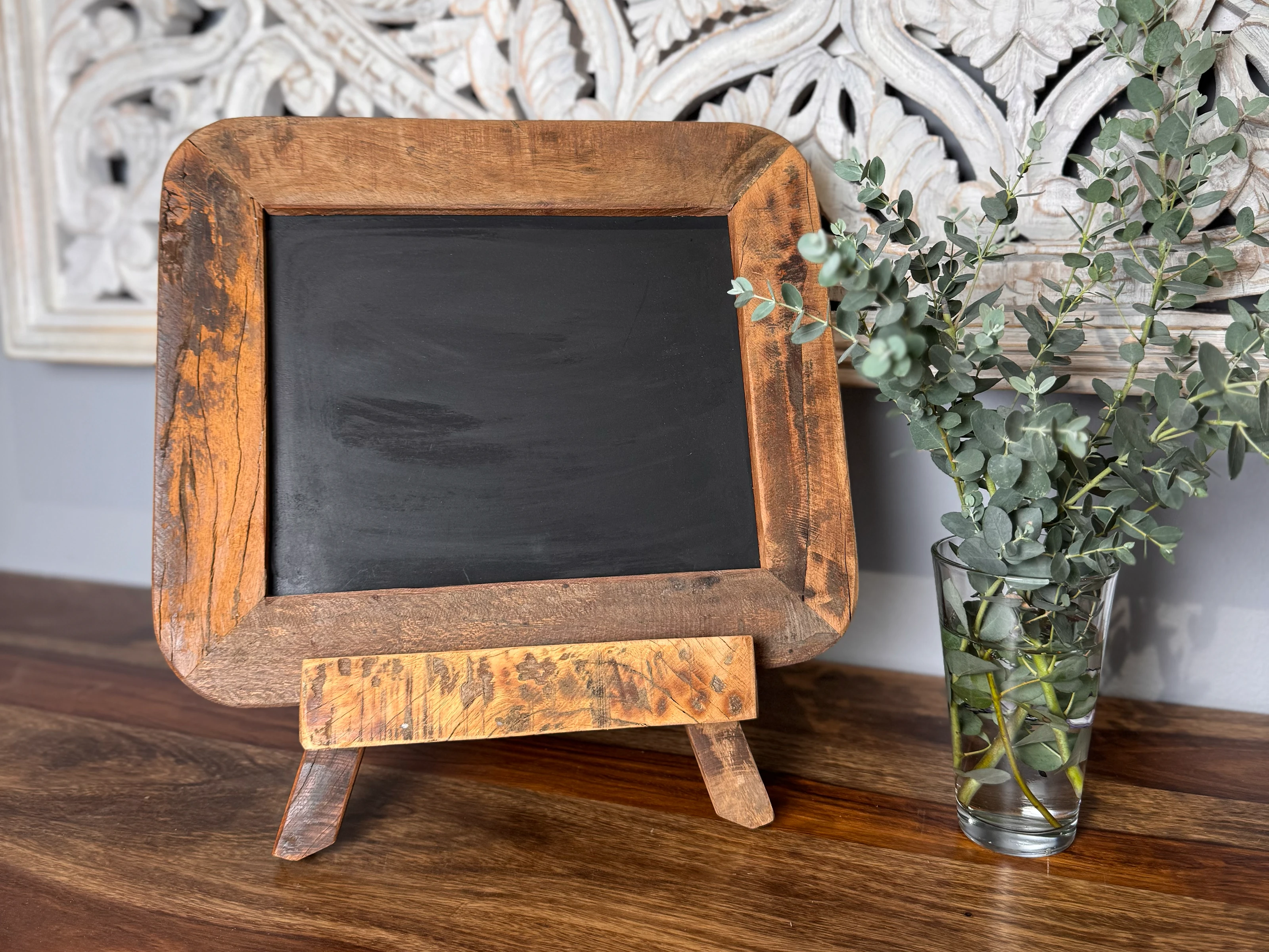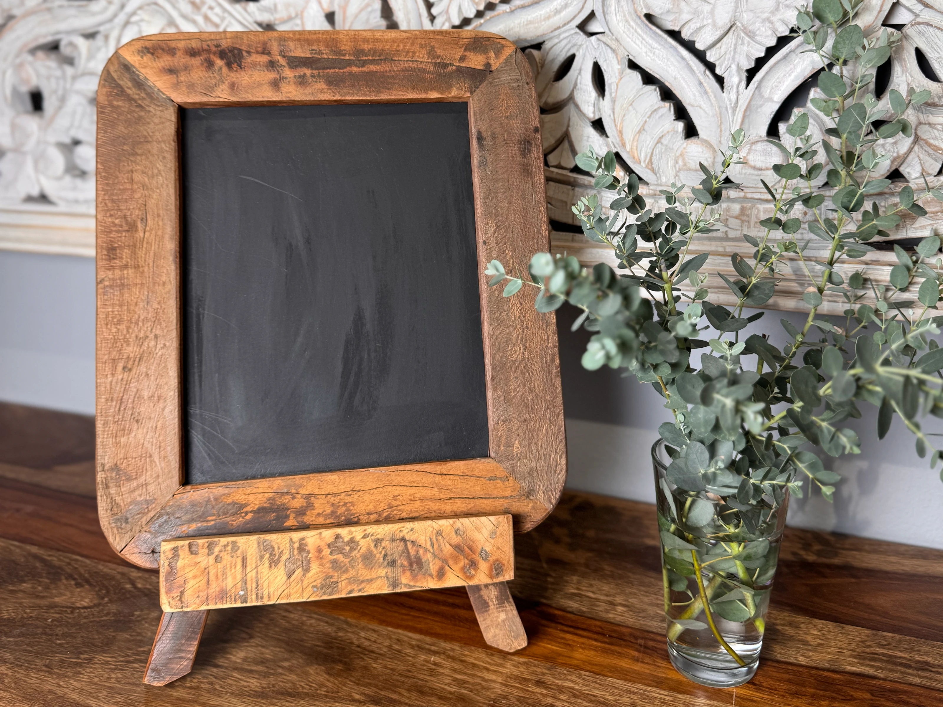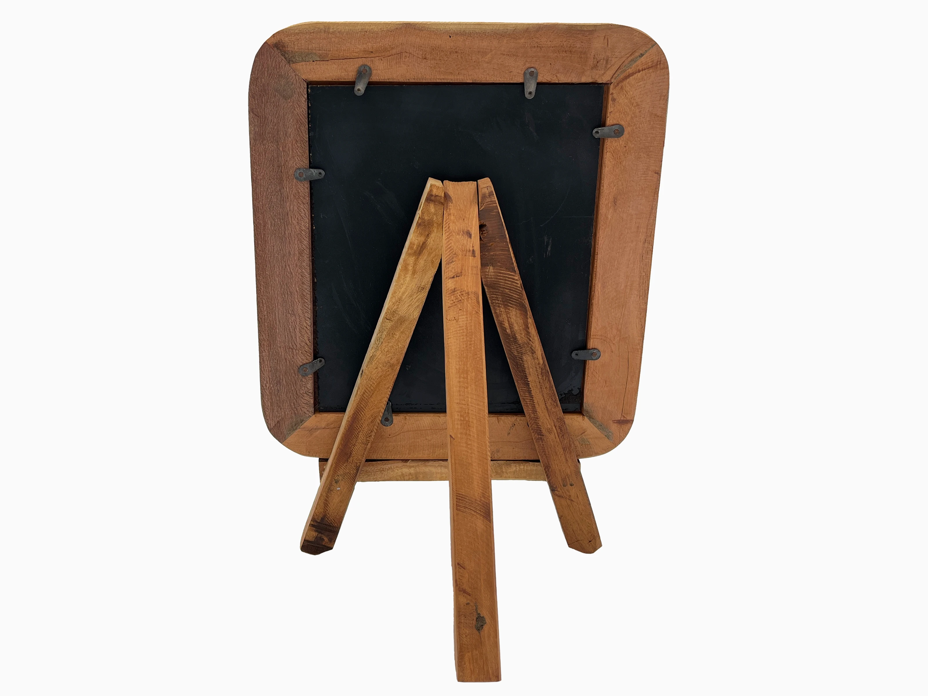 Der Bilderrahmen Sumatra bringt rustikales Flair in Ihr Zuhause. Gefertigt aus markantem Altholz mit scharten Kanten und charmanten Löchern, erzählt er Geschichten vergangener Zeiten. Statt einer gewöhnlichen Glasscheibe bietet die schwarze Rückwand Platz für Kreativität – ob mit Kreide beschriftet oder bemalt. Mit den Maßen von 29 x 41 x 23 cm setzt er Bilder im Format 15 x 20 cm gekonnt in Szene. Dank seines stabilen Standfußes im Staffelei-Stil ist er perfekt für Kommoden, Wandregale oder Schränke. Kombinieren Sie ihn mit weiteren Möbelstücken der Serie Sumatra und verleihen Sie Ihrem Zuhause eine ganz persönliche Note.
