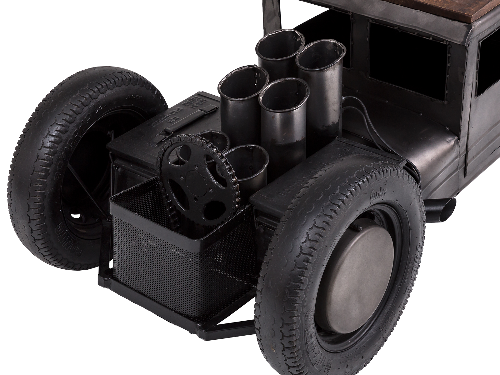 Auf jeden Fall, du kannst den Couchtisch Car 160 als kreative Autobar oder Bartisch nutzen und Flaschen drauf präsentieren wie in einem kleinen Barschrank. Mit etwas Fantasie wird er zum Flaschenregal oder Weinregal und bringt das Gefühl von Diners style und 50's Bar-Atmosphäre in deine Wohnung.