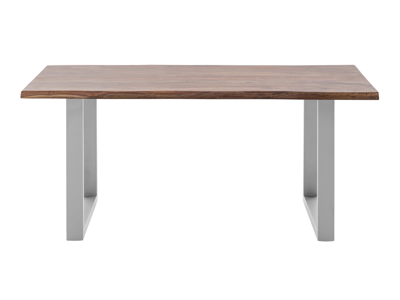 Wir haben besonderen Wert darauf gelegt, die Kanten des Tisches so zu bearbeiten, dass der ursprüngliche Charakter des Baumstammes erhalten bleibt, was jeden Tisch zu einem Unikat macht. Durch die Kombination mit den silberfarbenen Metallbeinen wird dem Tisch ein moderner Akzent verliehen, der sich nahtlos in jedes Einrichtungskonzept einfügt.