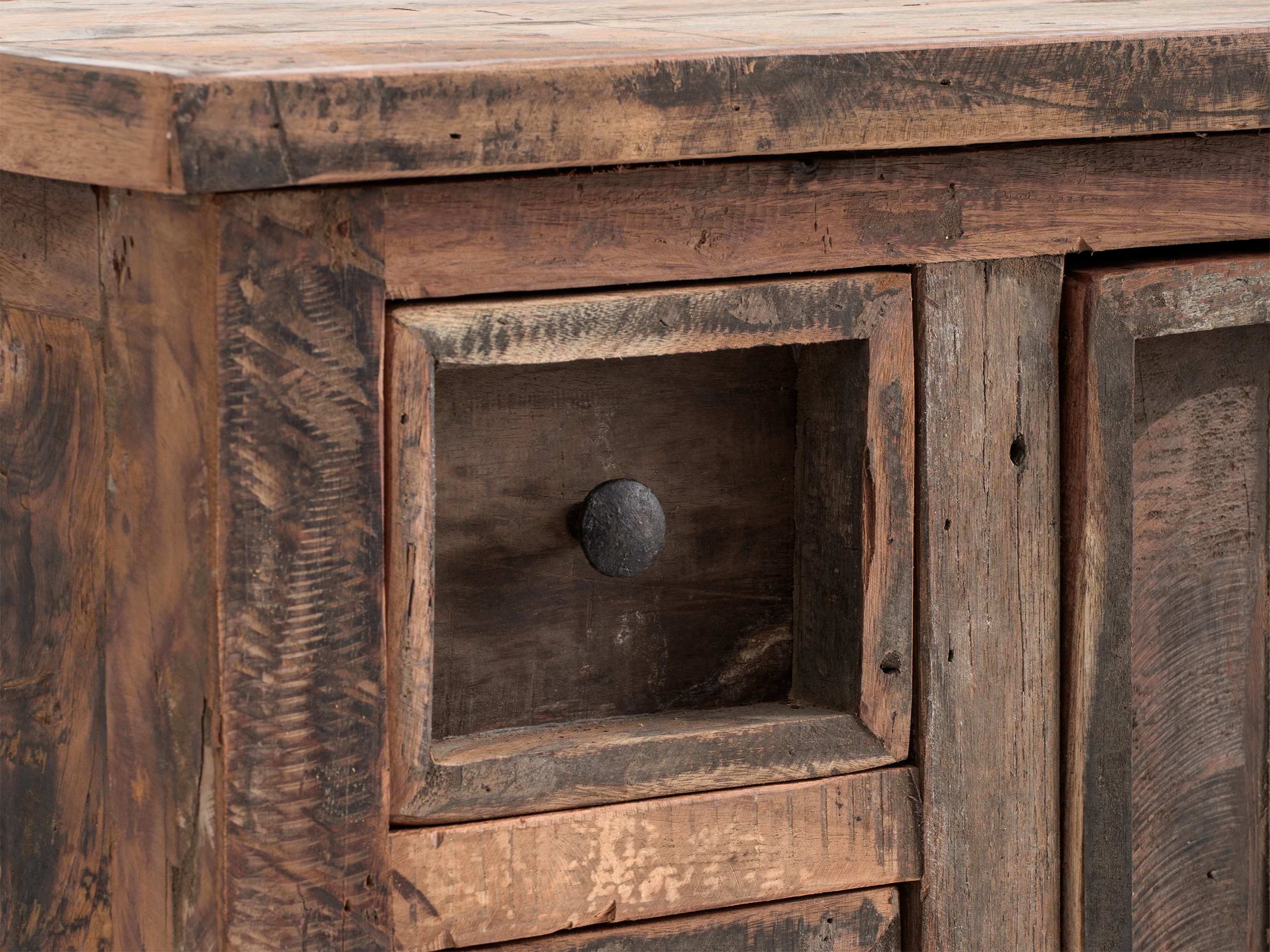 Ob im Wohnzimmer, Flur oder in der Küche – die Kommode im Landhaus-Chalet-Style fügt sich überall stilvoll ein. Die unbehandelte Oberfläche unterstreicht den authentischen Look, der perfekt zu anderen Möbelstücken der Serie Sumatra passt. Ein echtes Highlight für Liebhaber von Altholzmöbeln!
