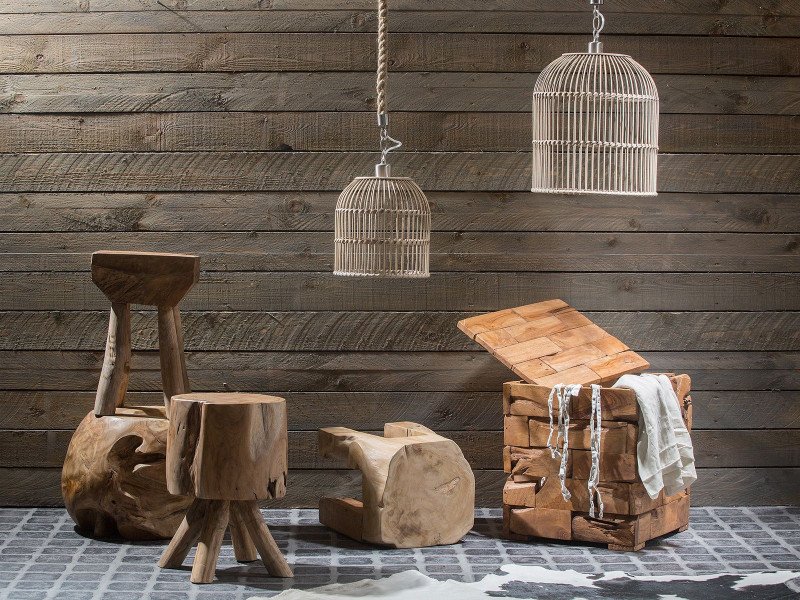Eine praktische Bereicherung für eine alpin inspirierte Einrichtung sind Hocker in urigen Designs: Sie lassen sich ganz nach Bedarf als Sitz- oder Ablagemöbel einsetzen und benötigen dabei nur wenig Platz. Massivum bietet die universellen Kleinmöbel in viele Varianten an. So sorgen beispielsweise bei den Modellen Tyree und Siberian Teakholz und Ziegenfell für die rustikale Note. Auch die massiven Hocker Salado I und II aus besonders naturbelassenem Teakholz mit Gebrauchsspuren im Vintagelook sind ideale Partner für den Almhüttenstil. Treibholzlampen ergänzen den Look wirkungsvoll und setzen ihn zugleich in ein warmes Licht. Kuschelige Accessoires in gedeckten Farben, wie Kissen und Decken aus warmer Wolle, bringen eine Extraportion Gemütlichkeit dazu. So steht entspanntem Cocooning im angesagten Chalet-Stil nichts mehr im Wege.
