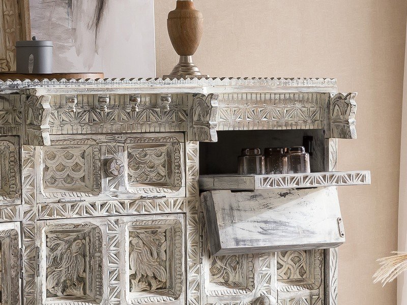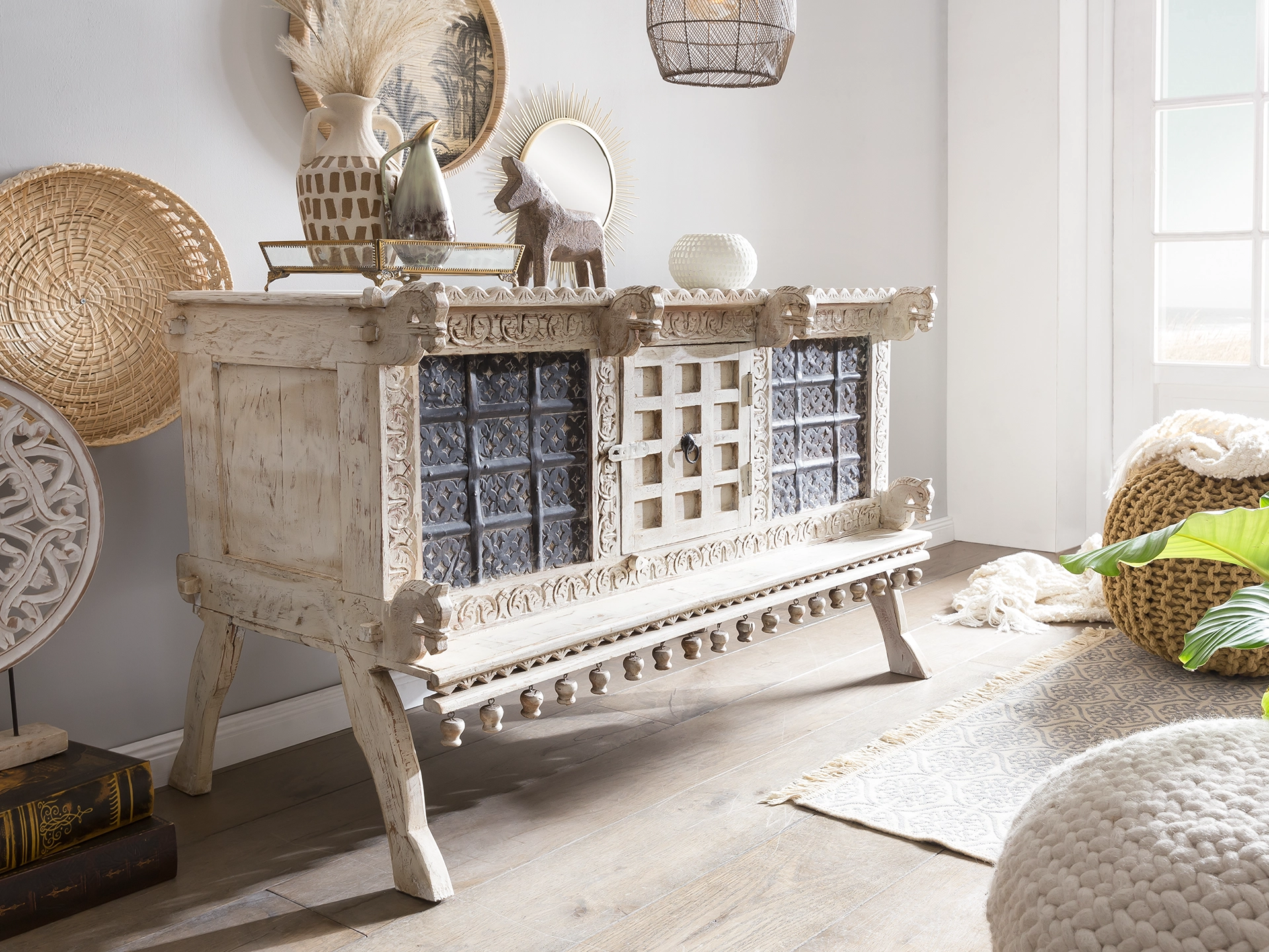Bleiben wir bei verspielten Verzierungen und Mustern, dann fällt uns auf jeden Fall noch MUMBAI ein. Die Linienführung bei diesen Möbelstücken ist zwar klar und gerade, aber die geheimnisvollen, vielfältigen Schnitzereien an Türen und Schubladen vereinen sich zu einer verspielten und aufgeweckten Optik, die einer feinsinnigen Einrichtung schmeicheln.
