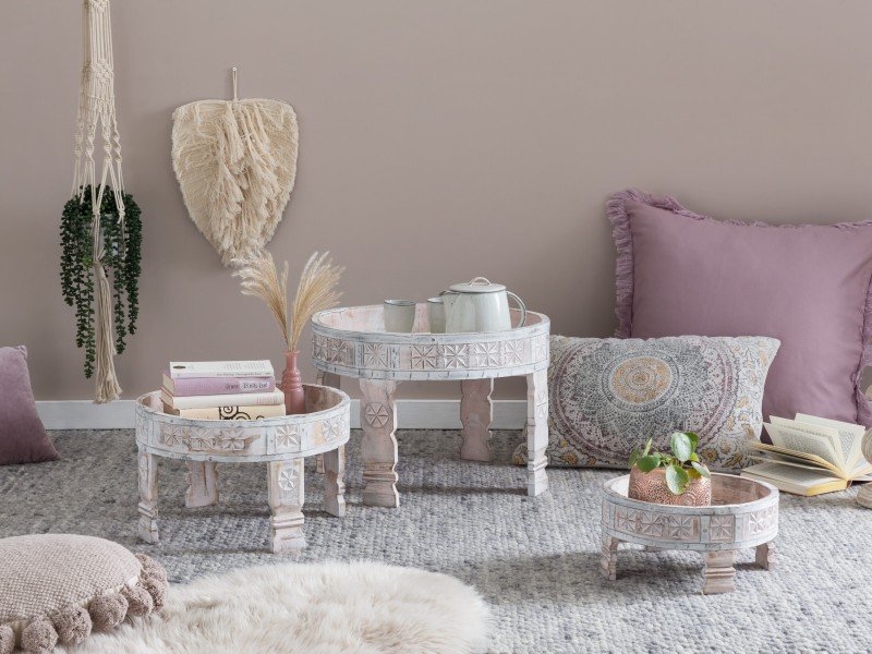 Und unsere DAMCHAYA Möbelreihe ist in erster Linie traditionell und geschichtsträchtig, doch würden wir sie auch ganz klar zu den verspielten Einrichtungsstilen ordnen. Hell und durch all die Verzierungen und Schnitzereien sehr romantisch und verträumt. Verschiedene, ausgefallene Linienführungen und feine Details kennzeichnen unsere Damchaya Möbel und machen sie somit auch unbedingt zu Ideen für einen Einrichtungsstil im Boho-Style. Für alle, die erst einmal Stück für Stück mit Boho beginnen wollen, haben wir auch Deko und Kleinmöbel im Dowry Chest Design. Unser Tablett Damchaya oder unsere Wandbilder im 4er-Set sind dabei auch eine charmante Geschenkidee für alle, die ein wenig Romantik aus Holz weitergeben wollen.
