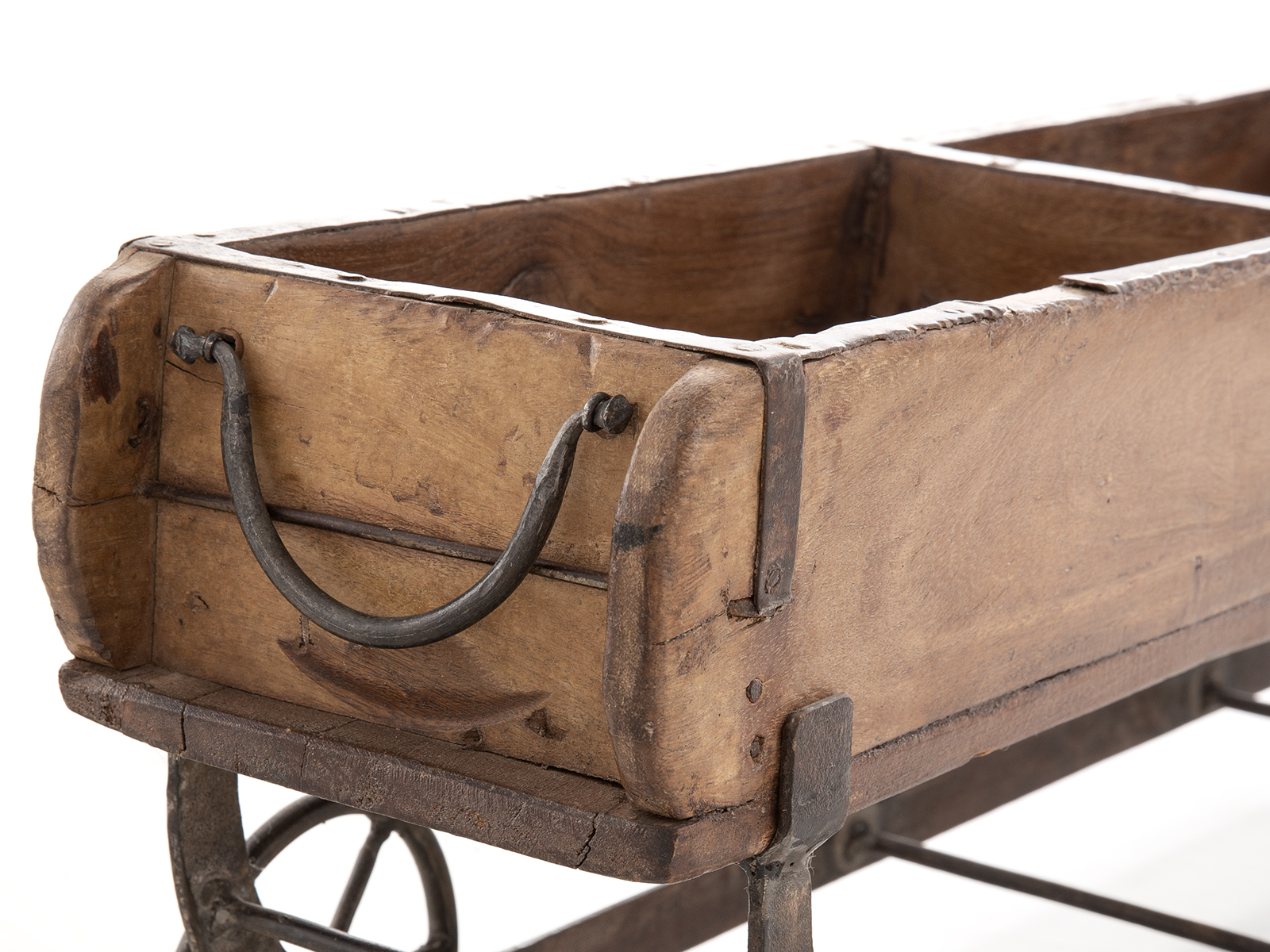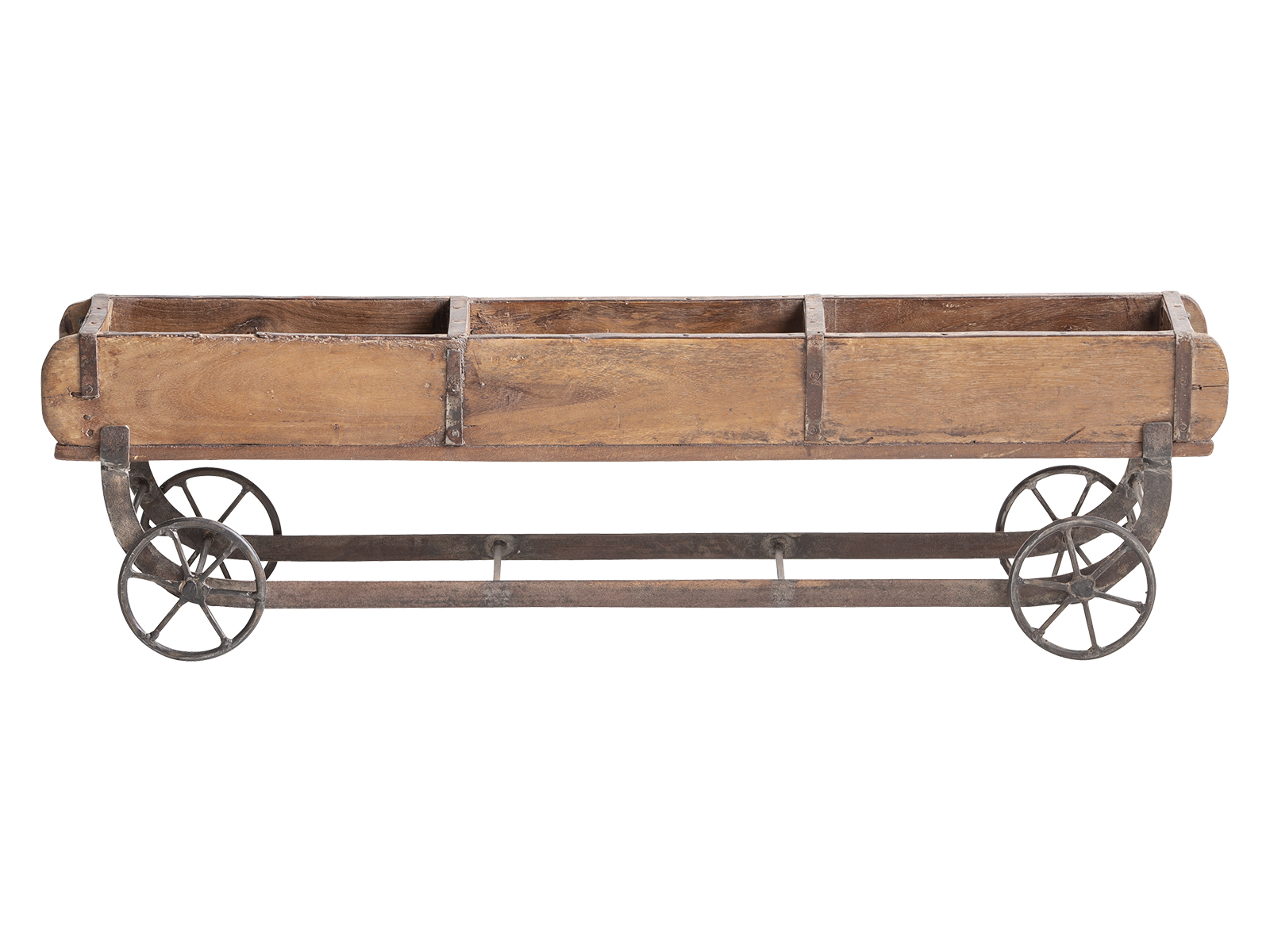 Diese 3er Ziegelform auf einem stilvollen Wagengestell aus Metall vereint rustikales Altholz mit industriellem Charme. Mit den Maßen von 84x24x18 cm wird sie zu einem vielseitigen Dekoelement, das in jedem Raum Akzente setzt – ob im rustikalen Badezimmer für Badutensilien, als Halter für Kerzen und Gestecke oder in der Küche für Essig & Öl. Ihrer Kreativität sind keine Grenzen gesetzt! Auch für den Outdoor-Bereich geeignet.