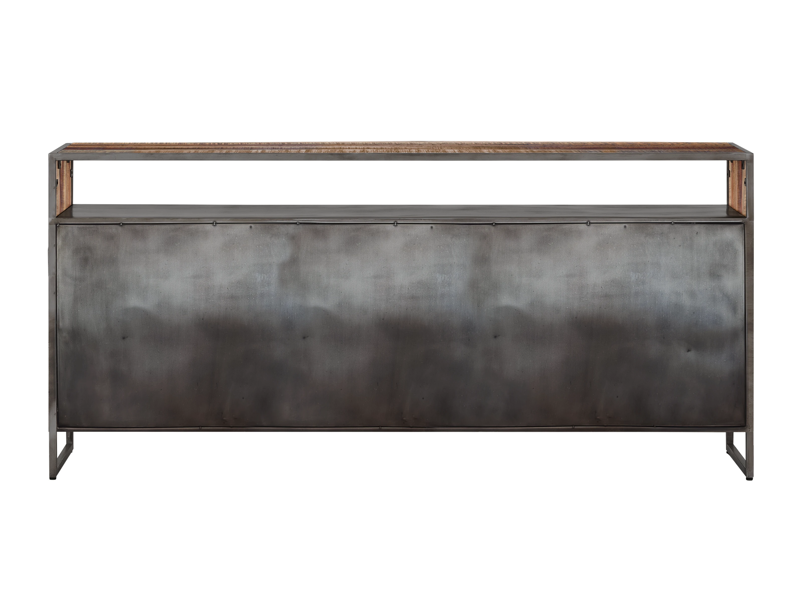 Das Metallgestell macht das Sideboard stabil und alltagstauglich, es steht wie ein sicherer Schrank. Oberflächen wischst du einfach mit einem feuchten Tuch sauber, so bleibt die Kommode pflegeleicht. Als Anrichte passt es wunderbar zu einem Holzschrank und rundet deine Wohnzimmer Einrichtung Idee ab.