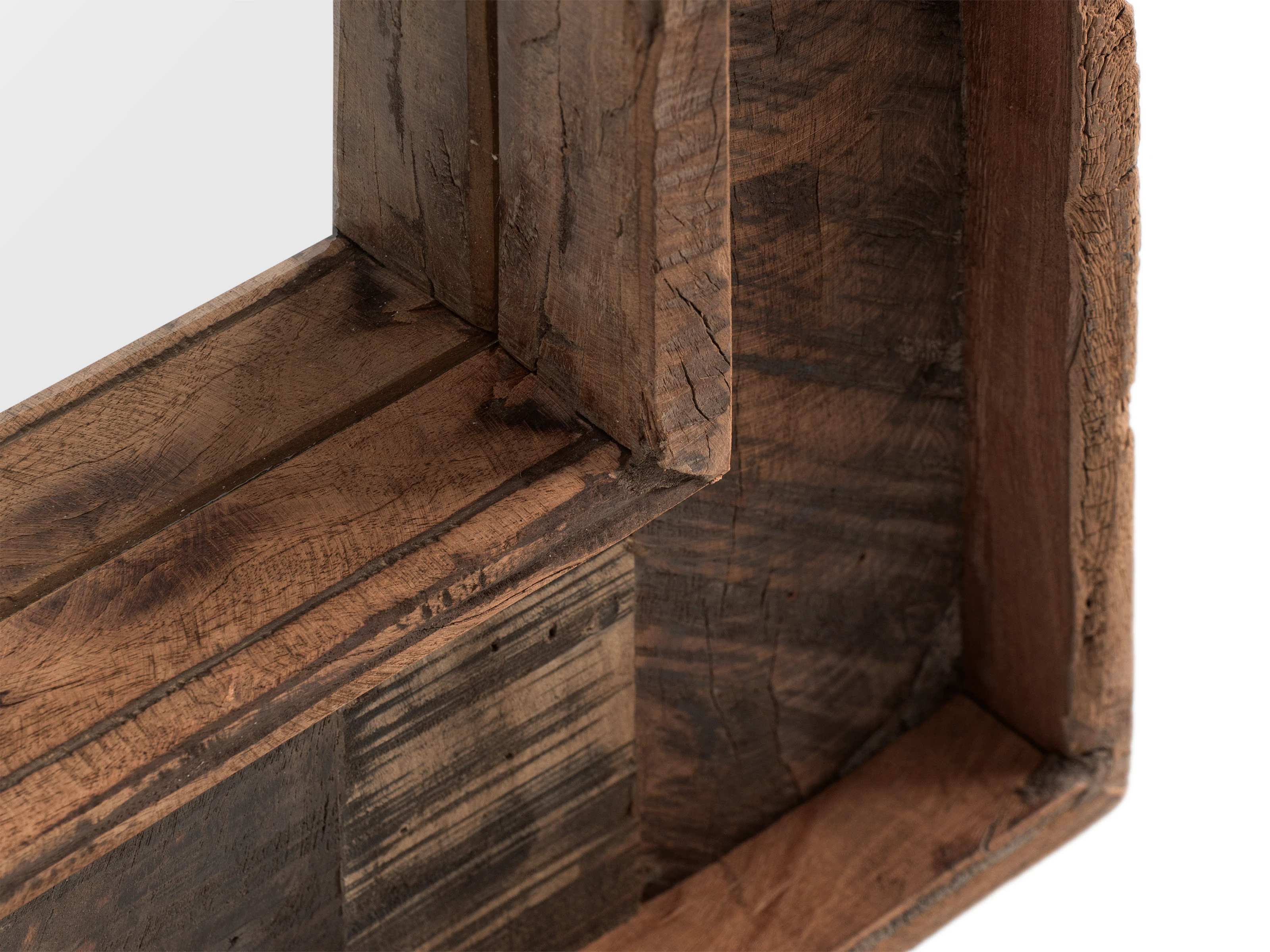 Entdecken Sie den einzigartigen Wandspiegel Sumatra – ein echtes Unikat, das aus recyceltem Altholz gefertigt wurde. Mit seinen großzügigen Maßen von 50x160x8 cm ist er nicht nur ein praktischer Ganzkörperspiegel, sondern auch ein stilvolles Highlight für Ihren Flur, Ihr Bad oder jeden anderen Raum.