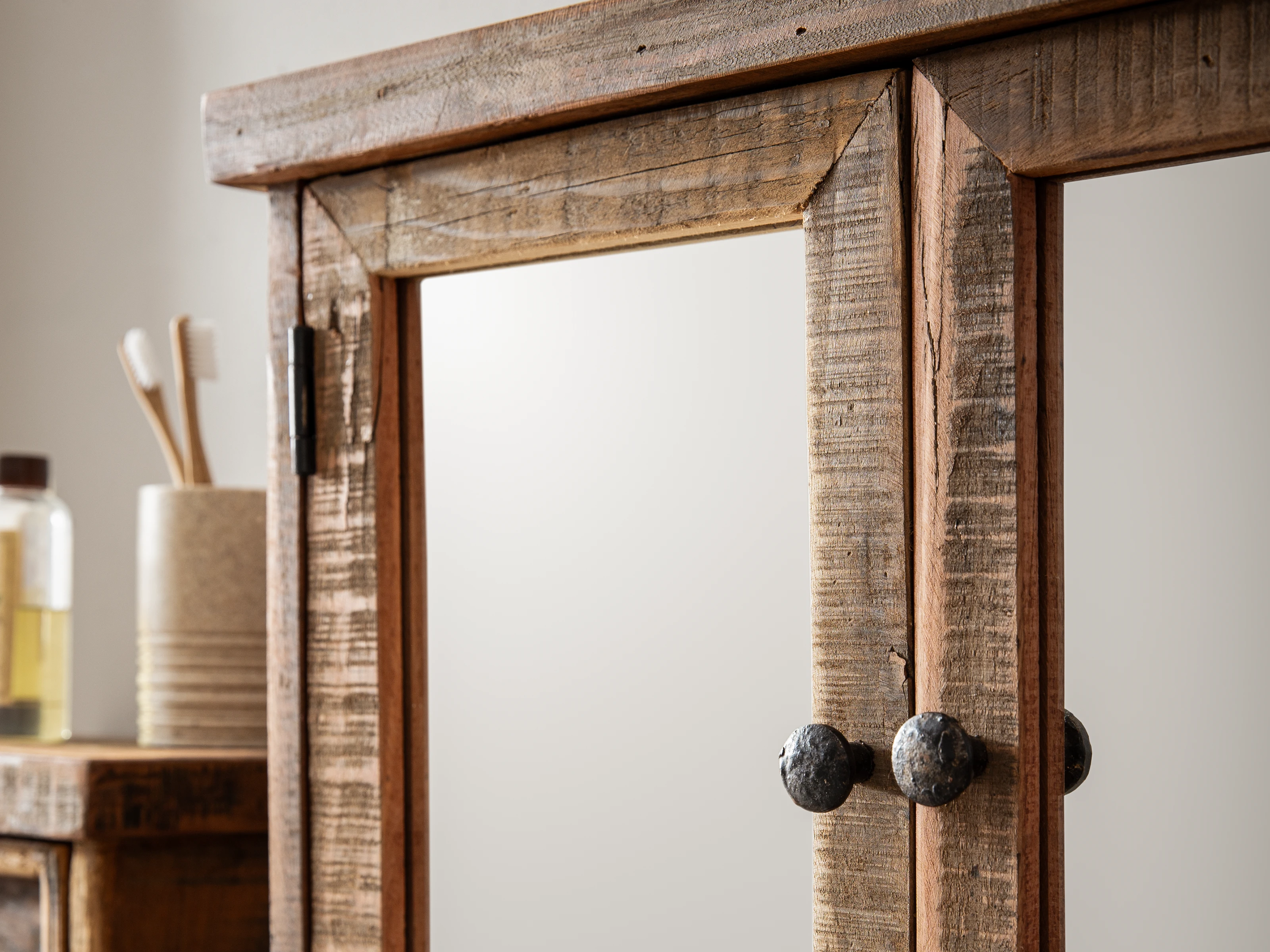 Rustikaler Spiegelschrank Sumatra – ein Unikat aus recyceltem Holz