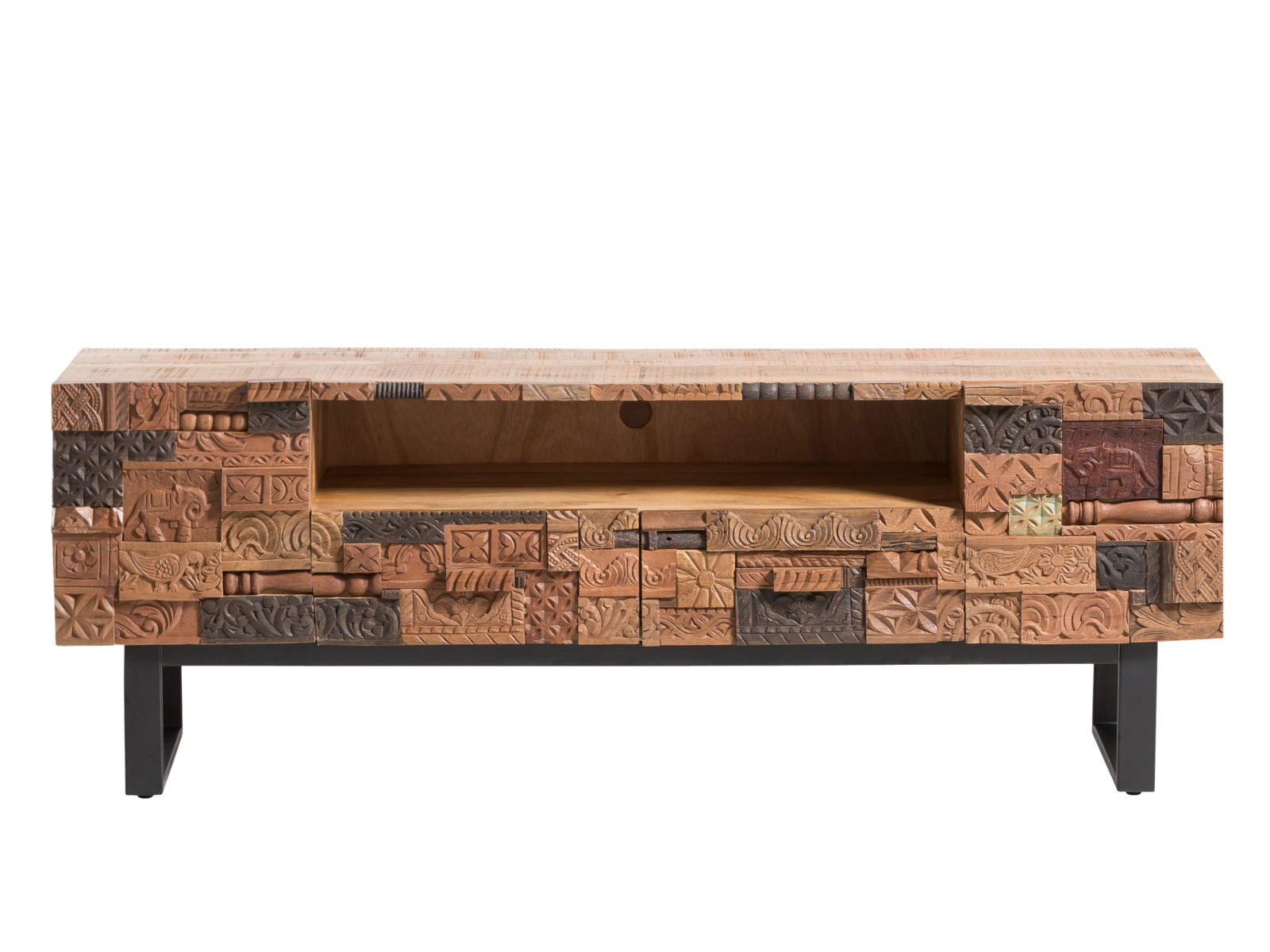 Gefertigt aus hochwertigem Mangoholz und veredelt mit Fronten aus recycelten Hölzern, bringt die Greenland TV-Bank jede Menge Geschichte mit. Die verwendeten Hölzer stammen aus alten indischen Türen, Booten und Fensterrahmen – jedes Stück ein Unikat mit eigener Vergangenheit. Diese einzigartige Kombination macht das Lowboard zu einem echten Blickfang in jedem Raum.