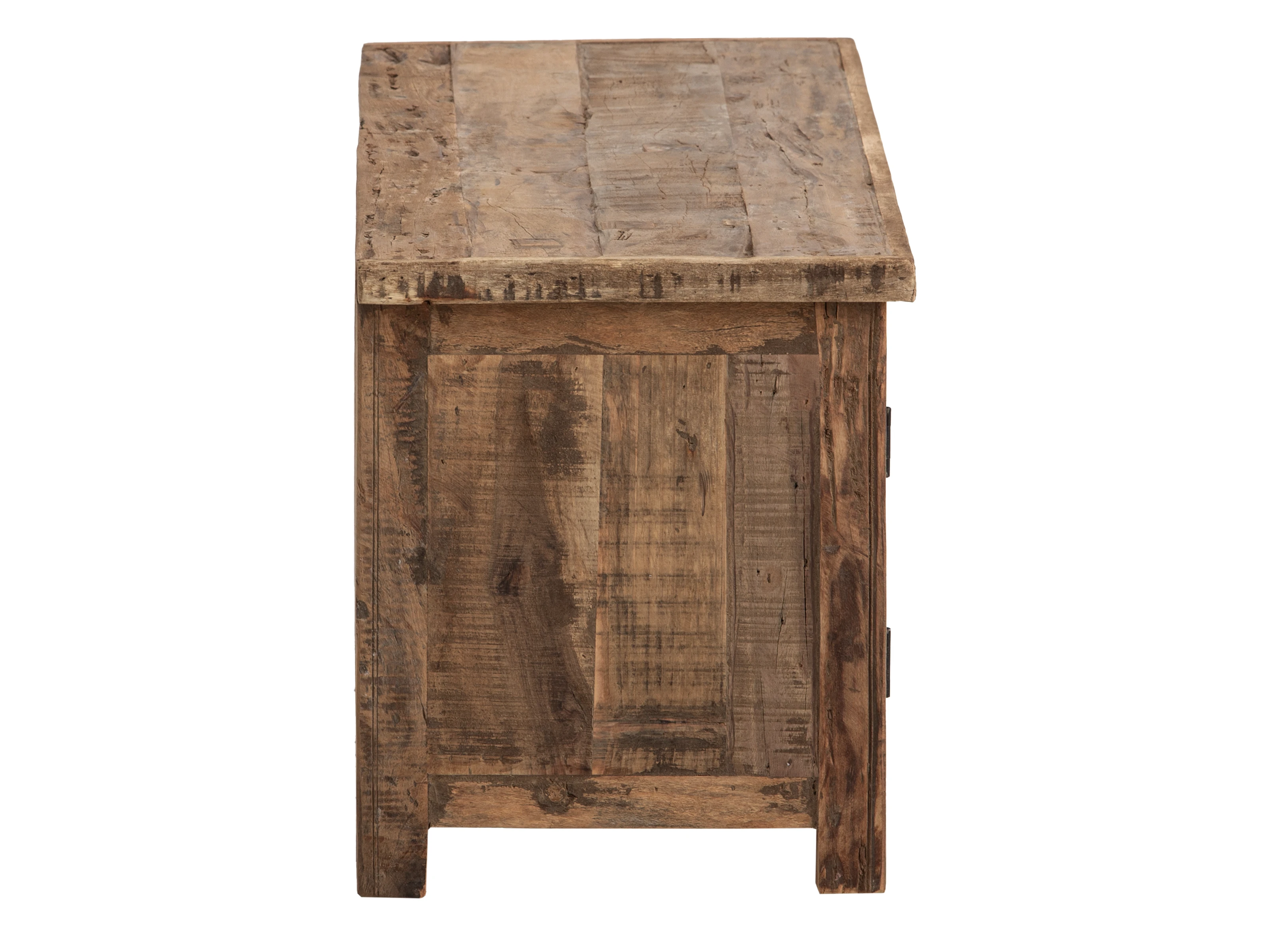 Stellen Sie sich vor, wie die rustikale TV-Bank Sumatra Ihr Wohnzimmer schmückt. Mit ihrer natürlichen Schönheit aus recyceltem Altholz erzählt jedes Stück seine eigene Geschichte. Das unbehandelte Holz verleiht der Fernsehbank eine unvergleichliche, authentische Ausstrahlung – perfekt für Liebhaber des besonderen Charmes. Mit einer Breite von 122 cm bietet dieses Lowboard genügend Platz für Ihren Fernseher, während zwei Türen und zwei Schubkästen Stauraum für Konsolen, Fernbedienungen und weiteres Zubehör bereithalten. Kombinieren Sie die TV-Bank mühelos mit den anderen Möbelstücken der Sumatra-Serie und schaffen Sie ein stimmiges Gesamtbild. Ein einzigartiges Möbelstück, das begeistert.