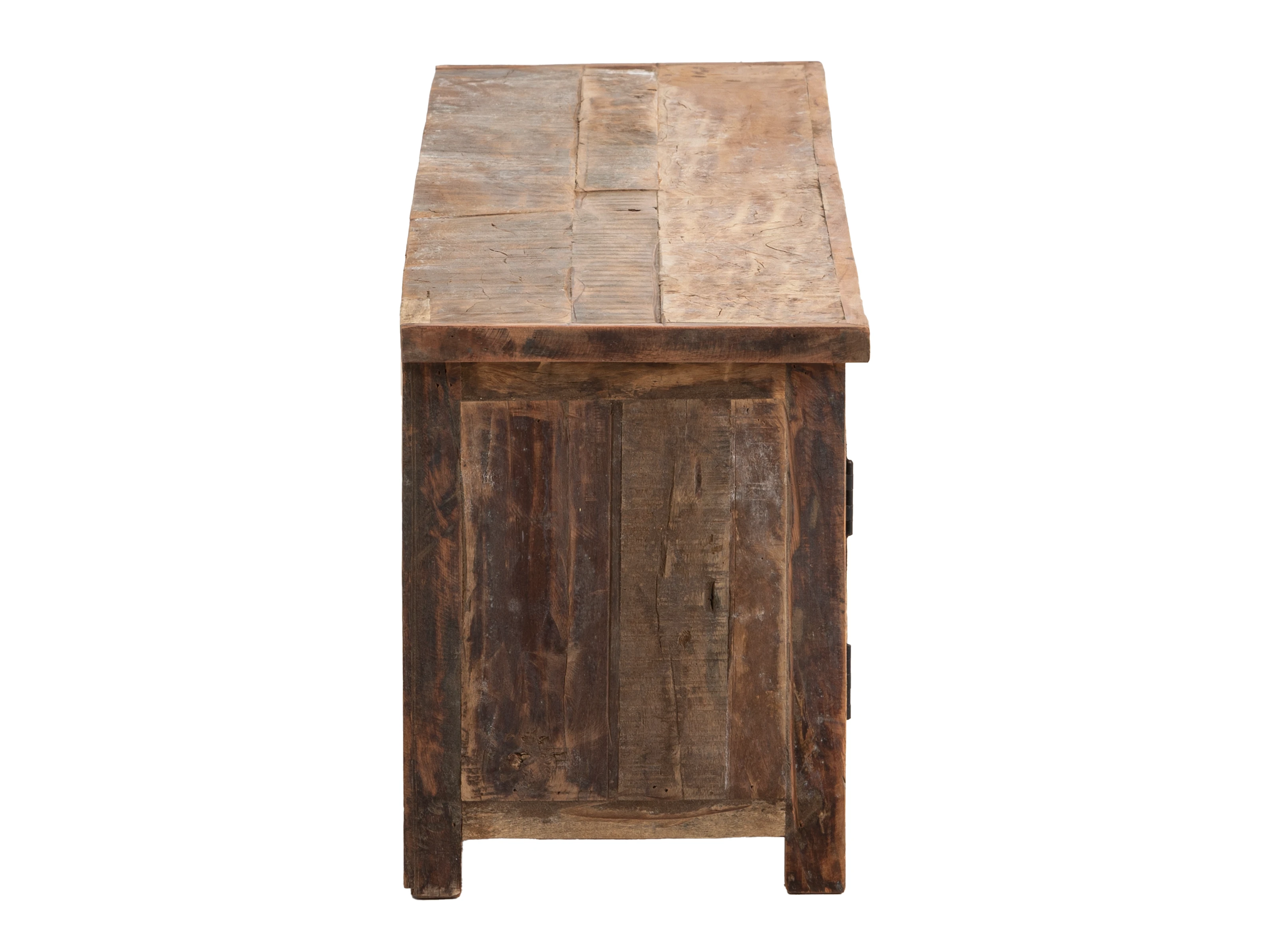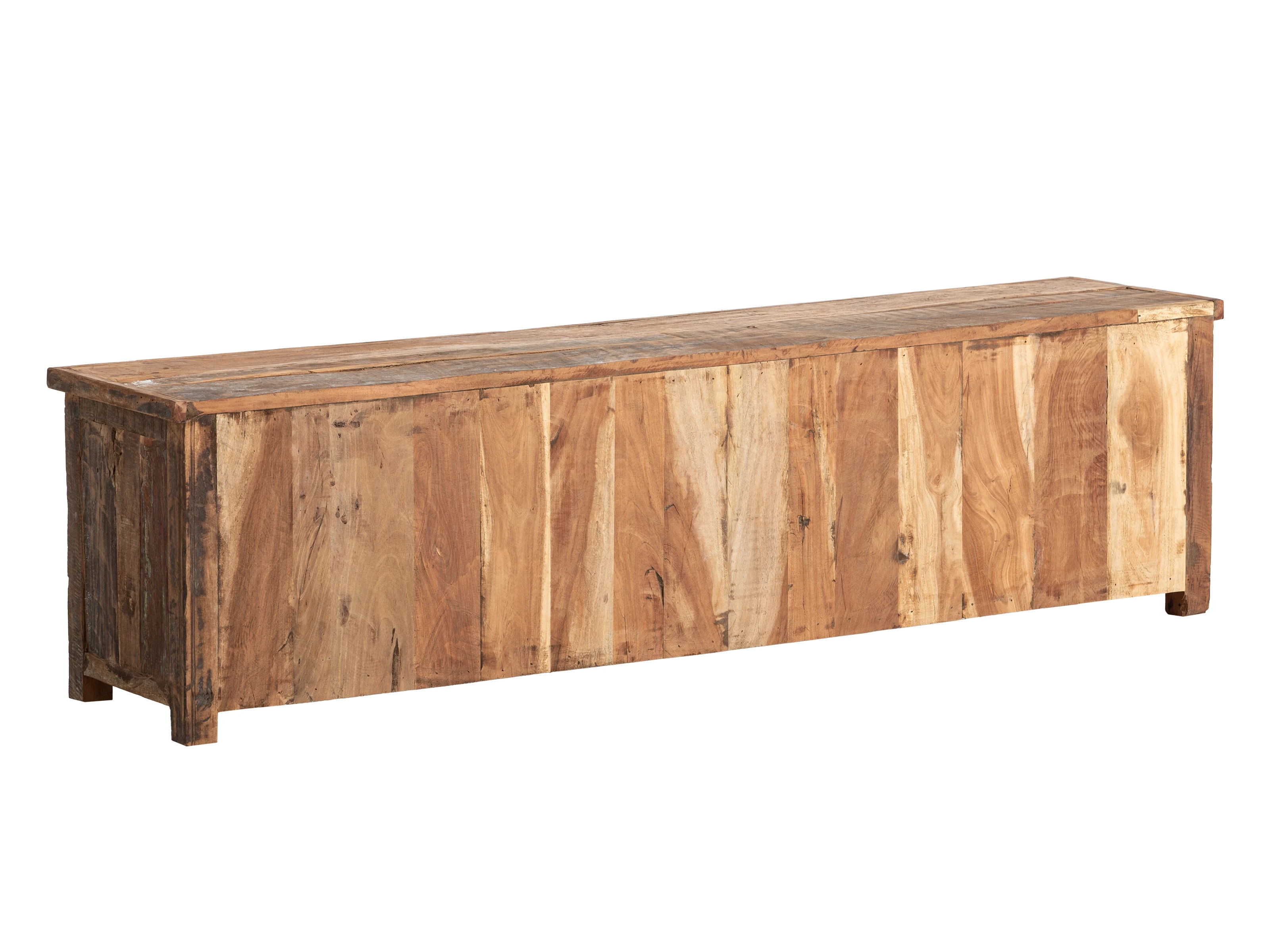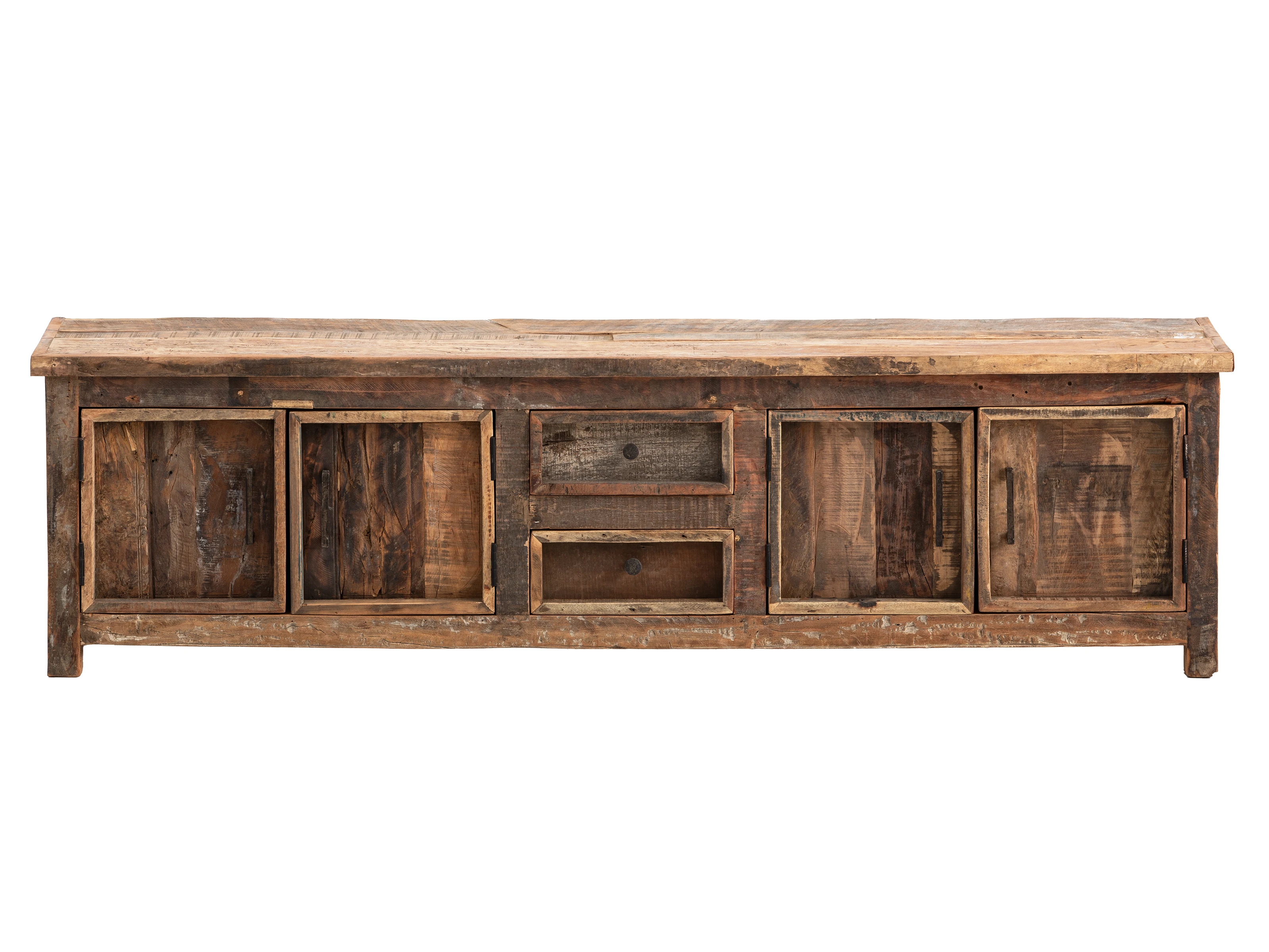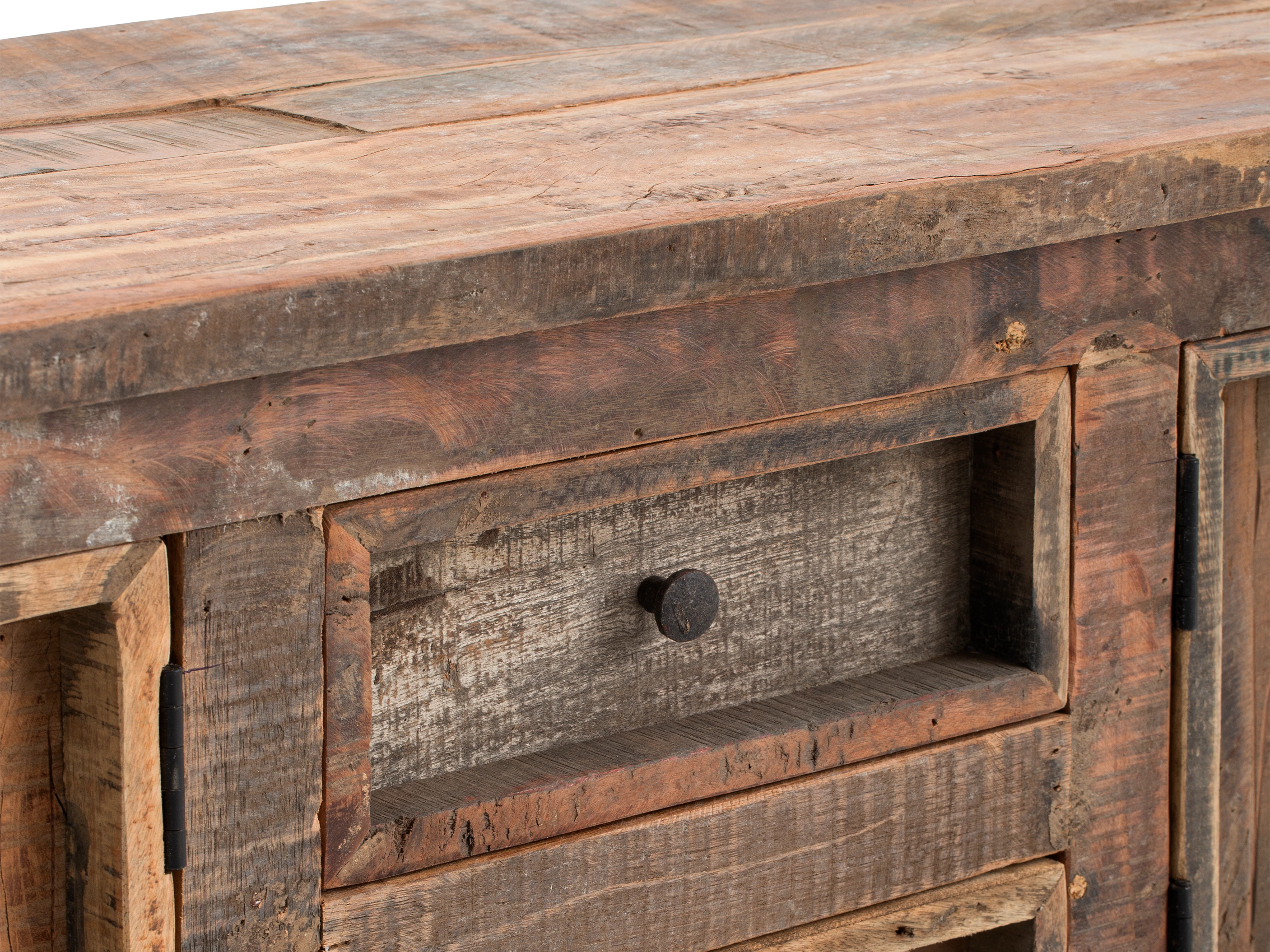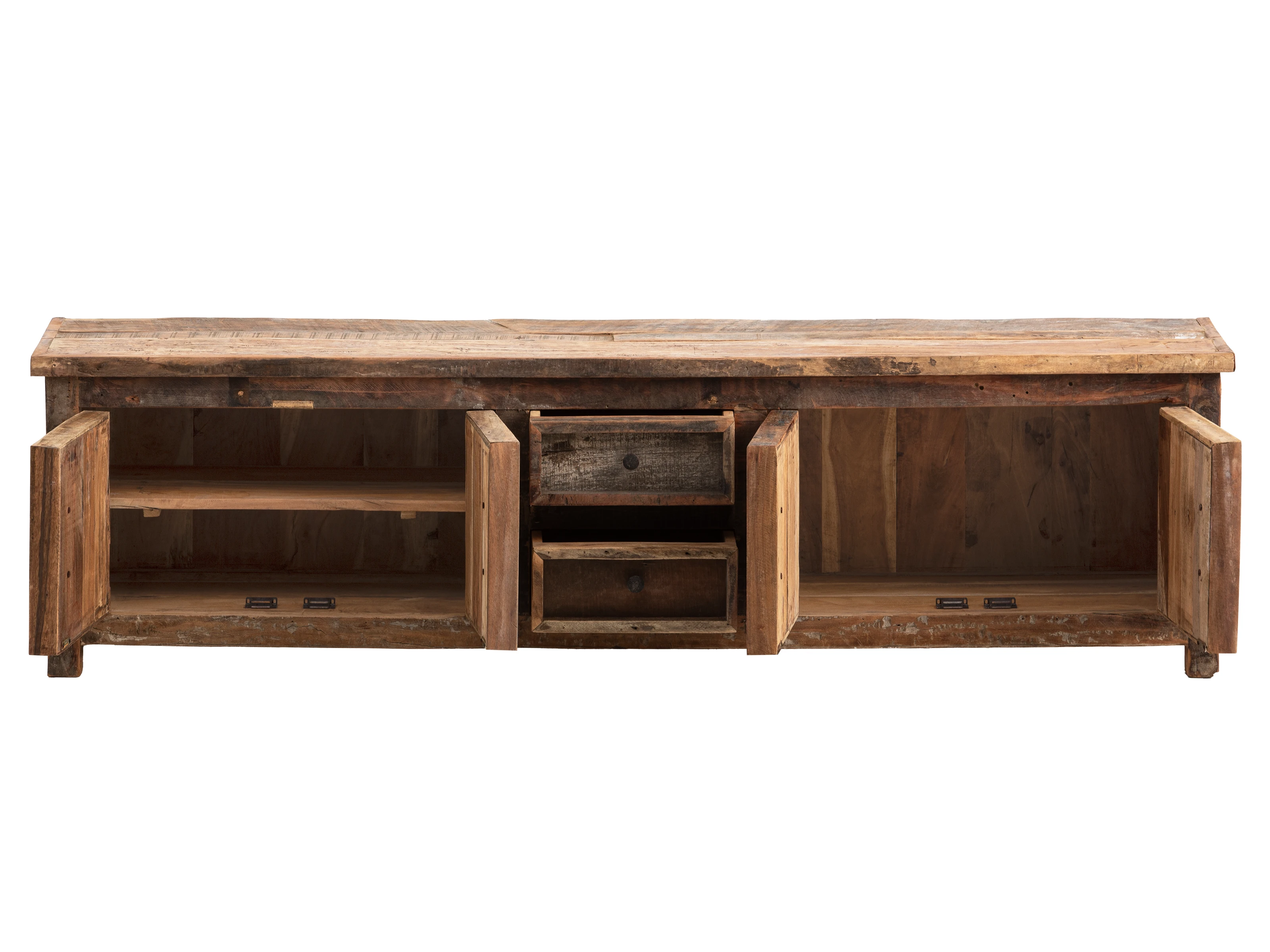 Holen Sie sich mit der TV-Bank Sumatra ein Stück pure Natur ins Wohnzimmer. Gefertigt aus 100 % recyceltem Altholz, überzeugt jedes Exemplar als echtes Unikat. Mit den Maßen 185 x 50 x 40 cm (BxHxT) bietet sie genügend Platz für Ihre Medientechnik, Player und Konsolen. Die große Ablagefläche hält Ihren Fernseher oder auch Dekorationen sicher in Szene.