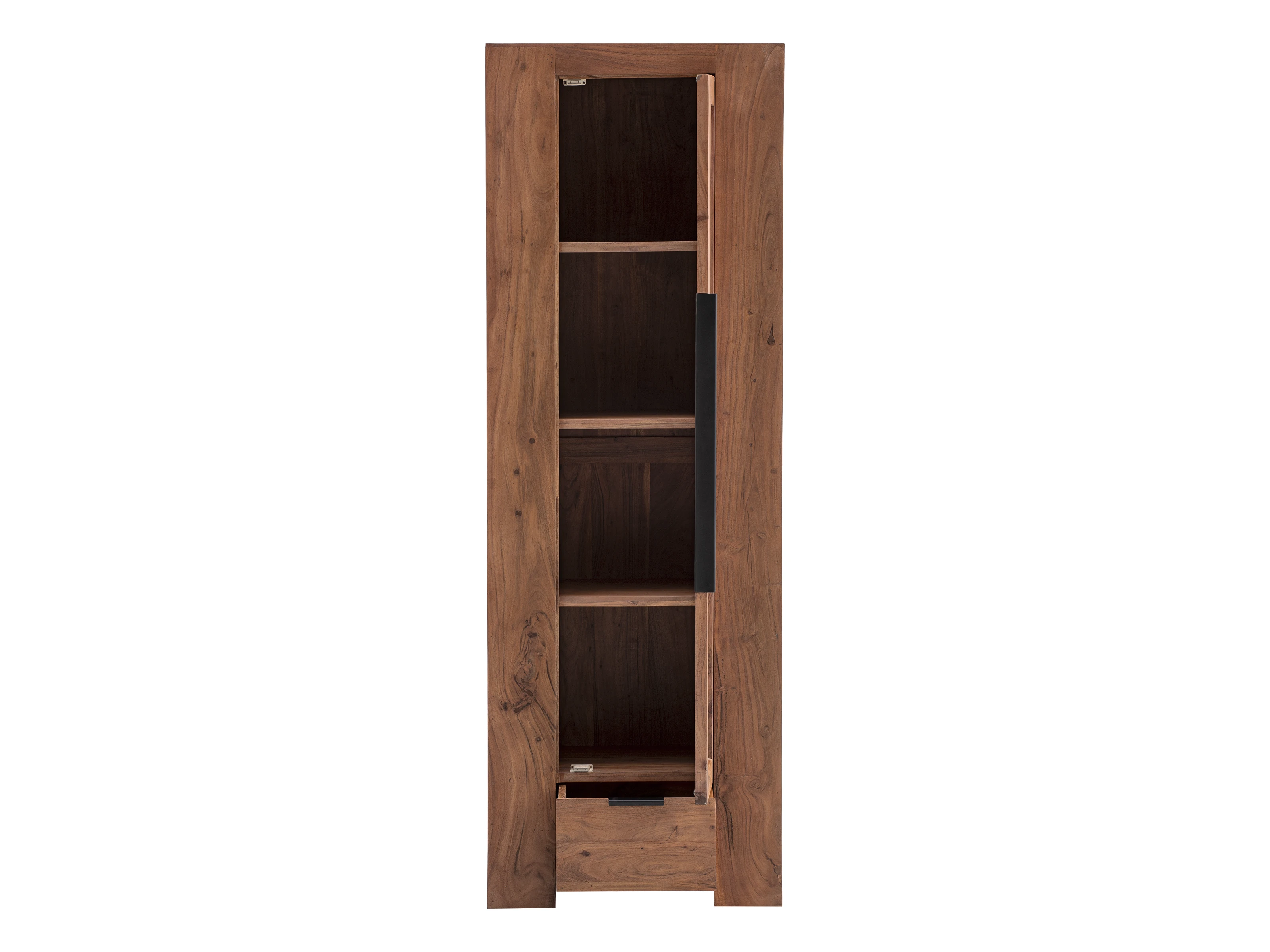 Die Vitrine Osbon Akazie besteht aus warmem Akazienholz und hat eine elegante Glasfront. Das Holz zeigt lebendige Maserungen wie ein kleines Naturbild. Du bekommst ein stabiles Möbel, das gleichzeitig wohnlich wirkt und lange Freude macht.