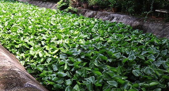 - water hyacinth, many water hyacinth canal in river village (Bild in Lizenz von cgdeaw – stock.adobe.com)
