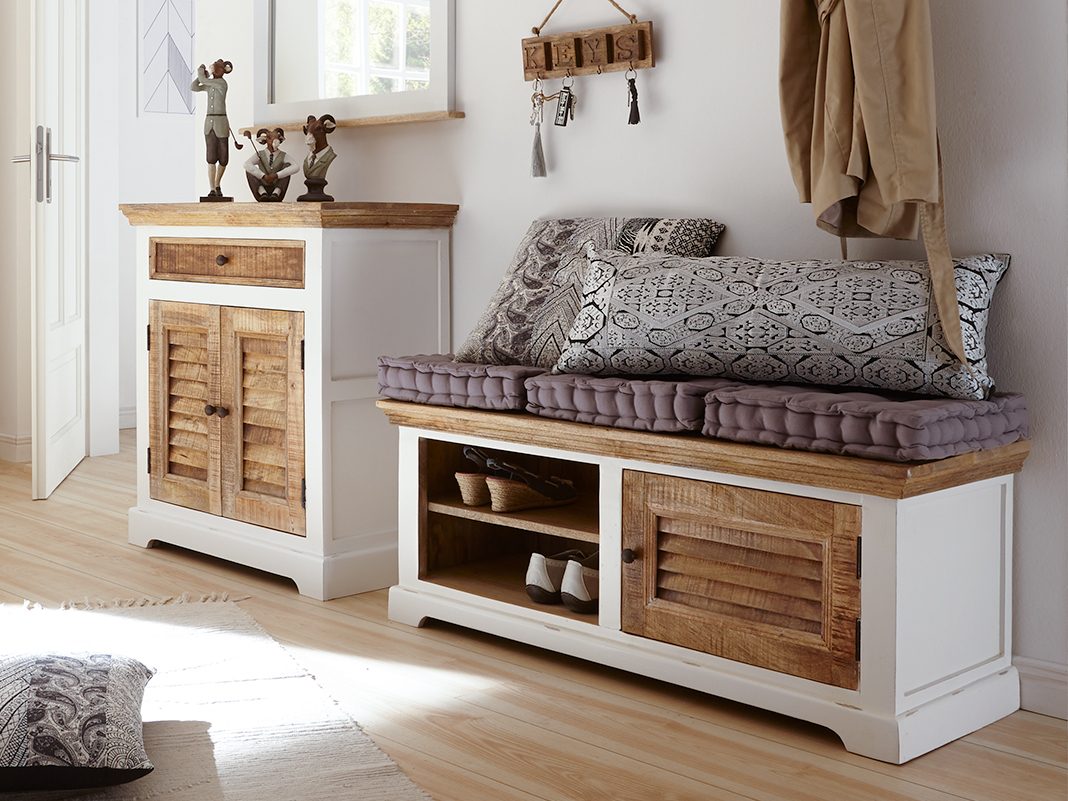 - Die Schuhbank mit Türen und/ oder Schubladen: Hier finden Alltagsgegenstände gut aufgeräumt und vor Staub und Schmutz geschützt ihren Platz.