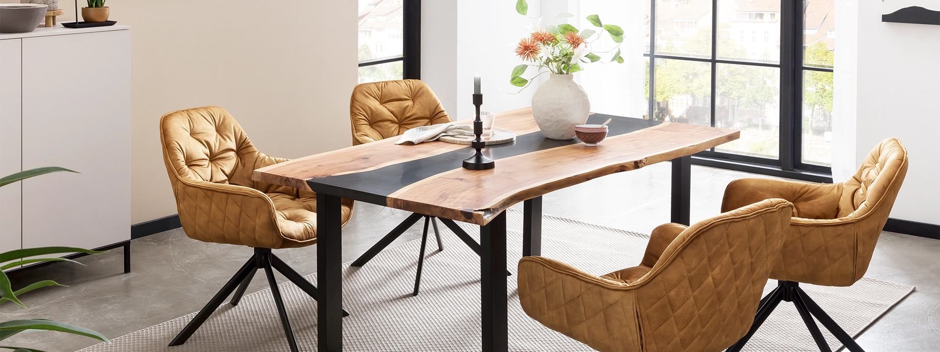 Tipp: Ist bereits ein Esszimmertisch vorhanden, zum Beispiel ein Erbstück, können auch einzelne Stühle hinzugekauft werden. Ab und zu haben Sie vielleicht einfach Lust auf Veränderung und möchten Ihre minimalistischen Designerstühle durch gemütliche Polsterstühle ersetzen.
