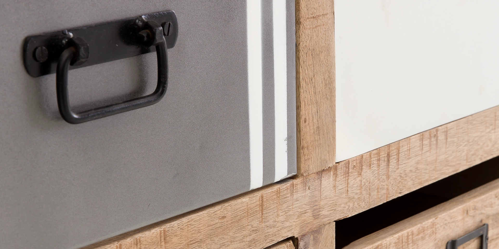 Die Holzschränke bestehen aus recycelten Hölzern wie Mango, Teak und Akazie – und sind überwiegend aus Fenstern und Türen von alten indischen Bauten gewonnen. Wir wollten genau diesen farbenfrohen Aspekt erhalten und ebenso die verschiedenen Strukturen der Hölzer erkennbar machen. Also haben wir die Farben ein wenig entfernt und den Holzton darunter sichtbar werden lassen. In Kombination mit dem weißen Korpus ist eine Serie entstanden, die wir gern als „kleines Mitbringsel“ von der südlichen Halbkugel in so manchem Wohnbereich sehen würden. Mit den offenen Fächern, mit Schubkästen und hinter Türen bieten Ihnen Lowboard, Kommode, Hochschrank und Kleiderschrank viel Stauraum. Jedes Möbelstück ist hochwertig von Hand gefertigt, mit eigener Geschichte und eigener Farbgebung. Das macht jeden Schrank für sich zu einem Unikat.
