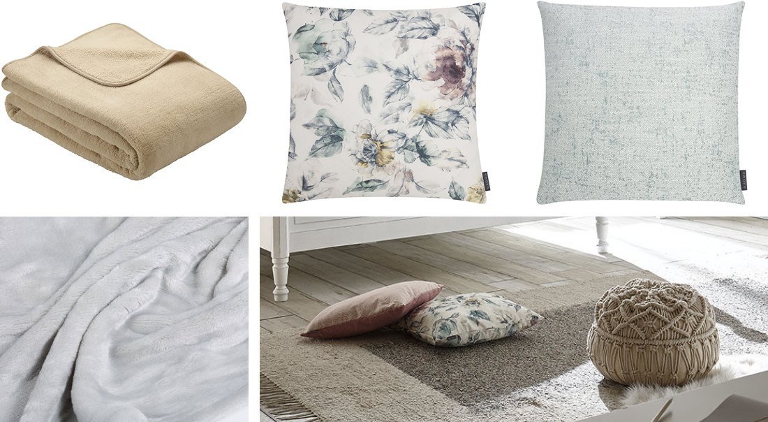Heimtextilien sind das A und O einer Einrichtung im Landhausstil. Großformatige Kissen, kuschelige Decken und Plaids wirken warm und gemütlich. Wählen Sie Textilien aus natürlichen Materialien wie Wolle, Baumwolle oder Leinen. Dazu passen flauschig-weiche, cremefarbene Schaffelle, in die man sich in den kühlen Herbst- und Wintermonaten herrlich einkuscheln kann.